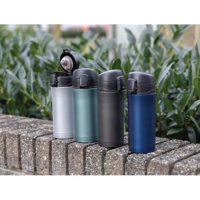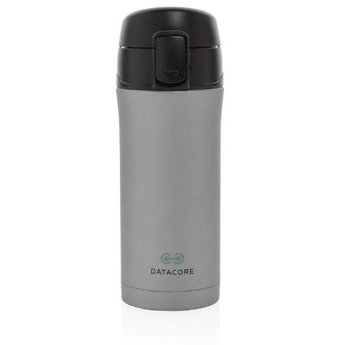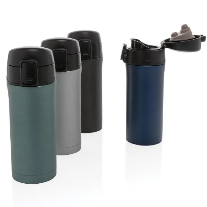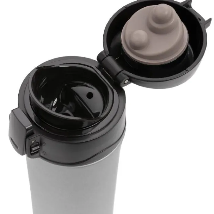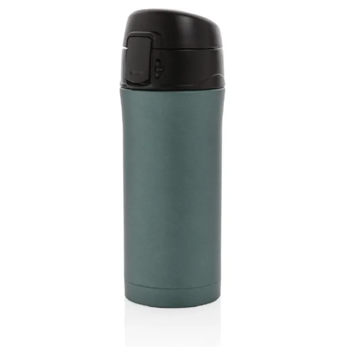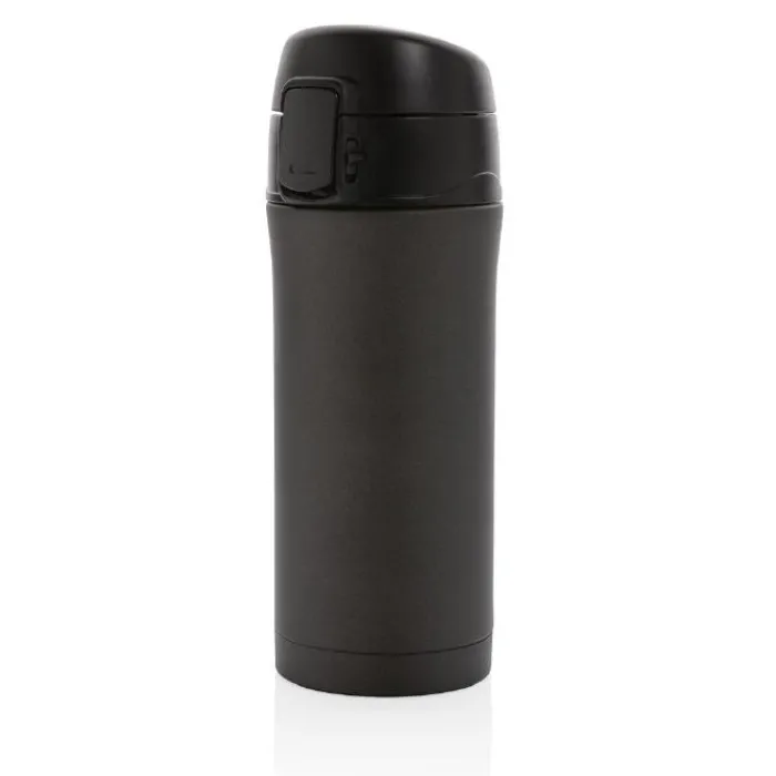 Bicchiere in acciaio inossidabile a doppia parete da 300 ml con isolamento sottovuoto che mantiene la bevanda calda fino a 5 ore e fredda per 15 ore. Tappo con pulsante per aprirlo che evita qualsiasi rischio di perdite o fuoriuscite, facile da pulire e lavabile in lavastoviglie. Adatto a qualsiasi porta bicchieri per auto.