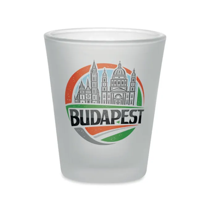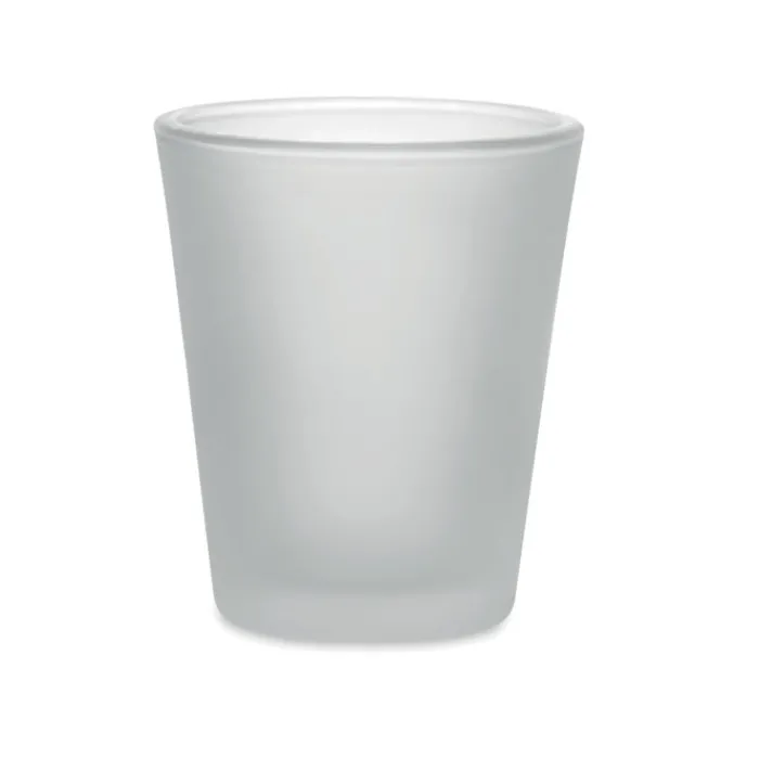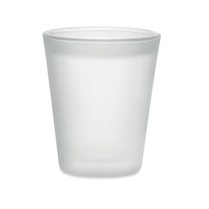 Bicchierino da shot riutilizzabile realizzato in vetro borosilicato con rivestimento speciale per la sublimazione. Capacità: 44 ml.