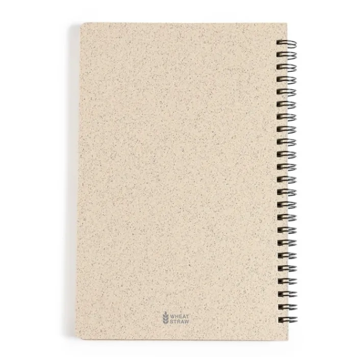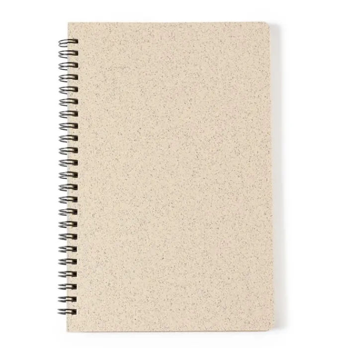 Quaderno con spirale laterale, con copertina in fibra di grano per promuovere l’uso di materie prime naturali e ridurre le emissioni inquinanti. Contiene 80 pagine neutre. Con etichetta Fibra di Grano.
