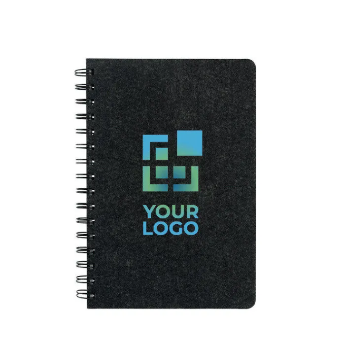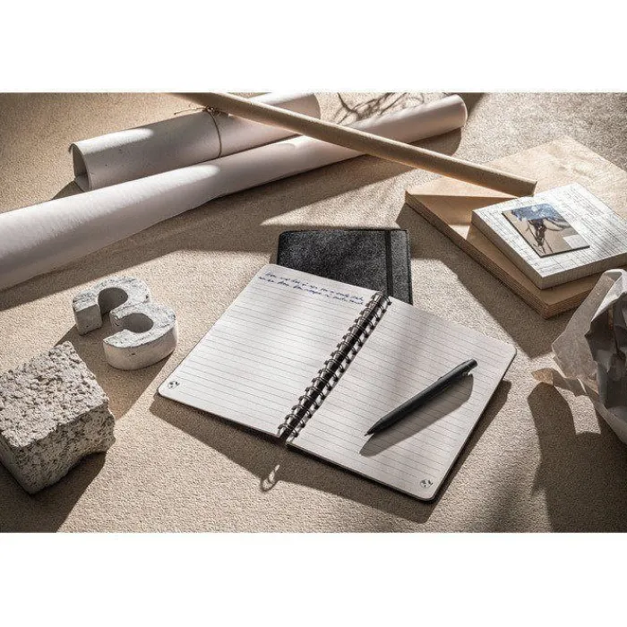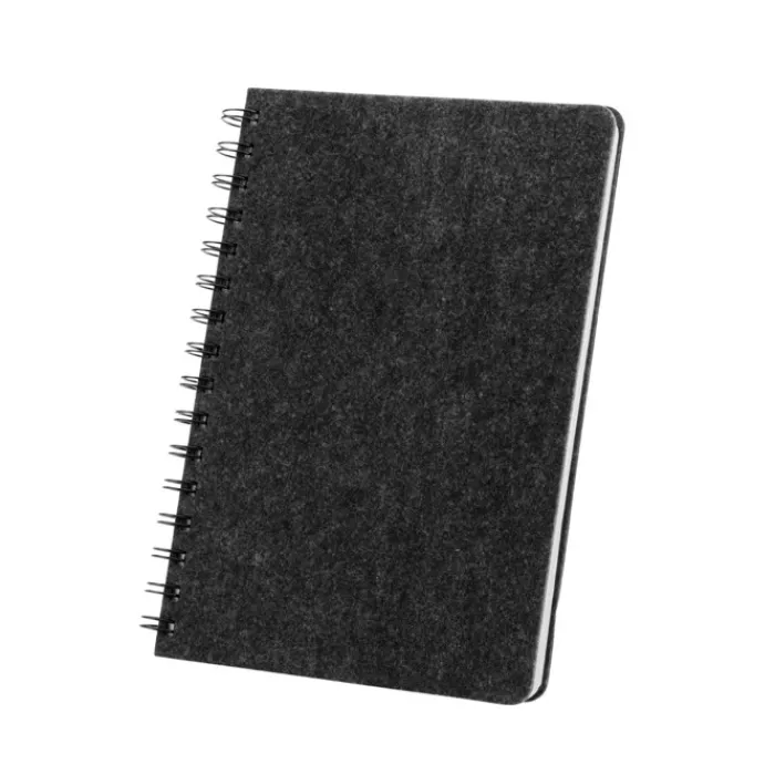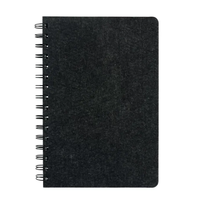 Block notes A5 con copertina semirigida in feltro riciclato (100% feltro rPET) , spirale e 160 pagine a righe color avorio riciclata al 100% (70 g/m²)