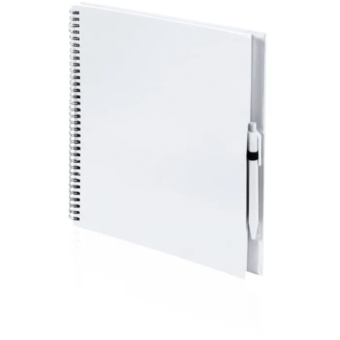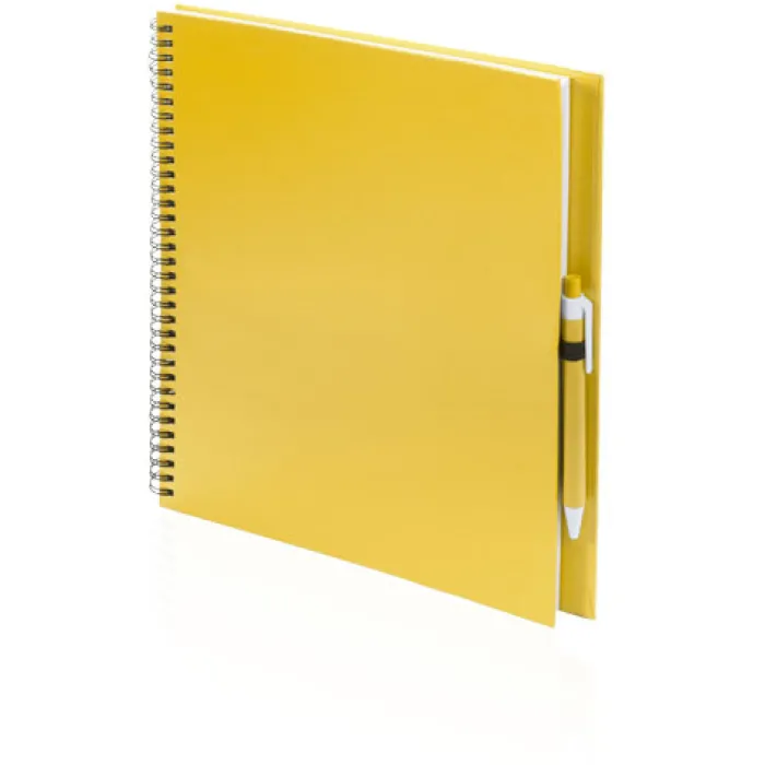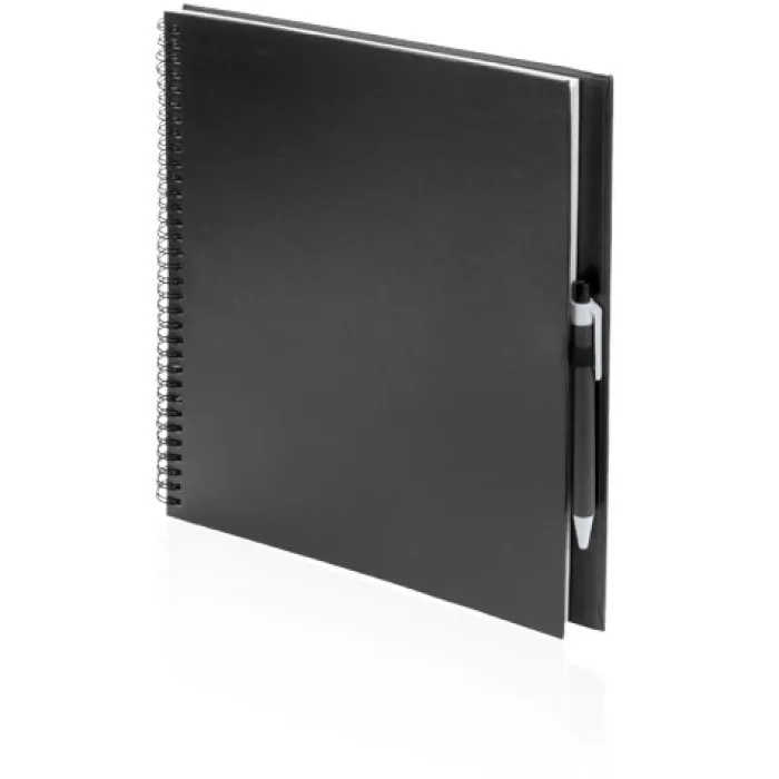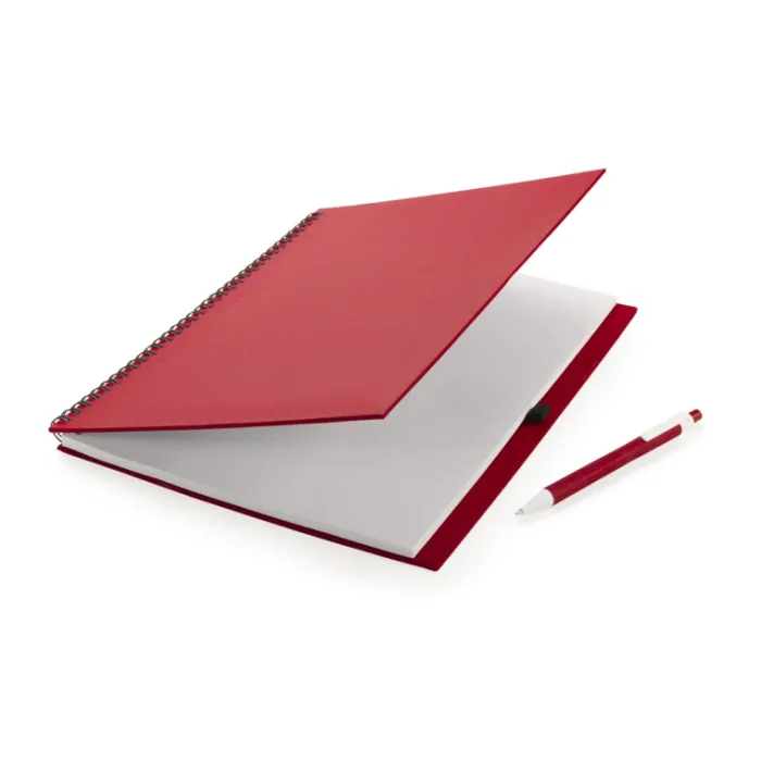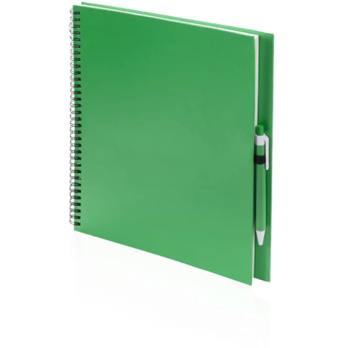 Quaderno con spirale con copertina morbida rifinita in robusto cartone riciclato disponibile in vari colori. Contiene 160 pagine neutre e una penna in cartone riciclato abbinata.