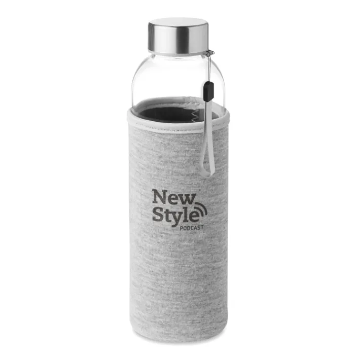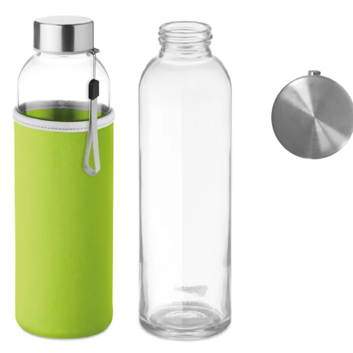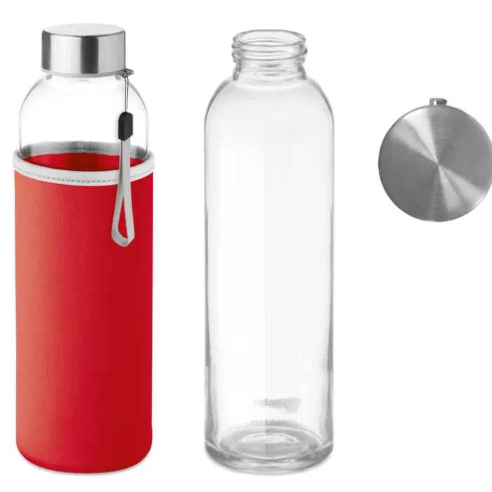 Borracce in vetro, ideali per attività come palestre o centri sportivi, perfette da regalare ai nuovi soci o durante eventi aziendali del marchio (e anche in eventi correlati a cui si partecipa). Offrono un recipiente che sarà utilizzato quotidianamente, garantendo così grande visibilità per l’azienda. La capacità è di 500 ml, lo standard per questo tipo di accessori. Il tappo è dotato di un piccolo cinturino per una presa più comoda. Questa bottiglia, tra le più vendute, è dotata di una custodia in neoprene che copre parte della superficie, migliorandone la presa. È disponibile in un’ampia varietà di colori, così da adattarsi al tono aziendale e abbinarsi bene al logo, facilitando l’associazione del prodotto all’azienda che lo ha fornito.