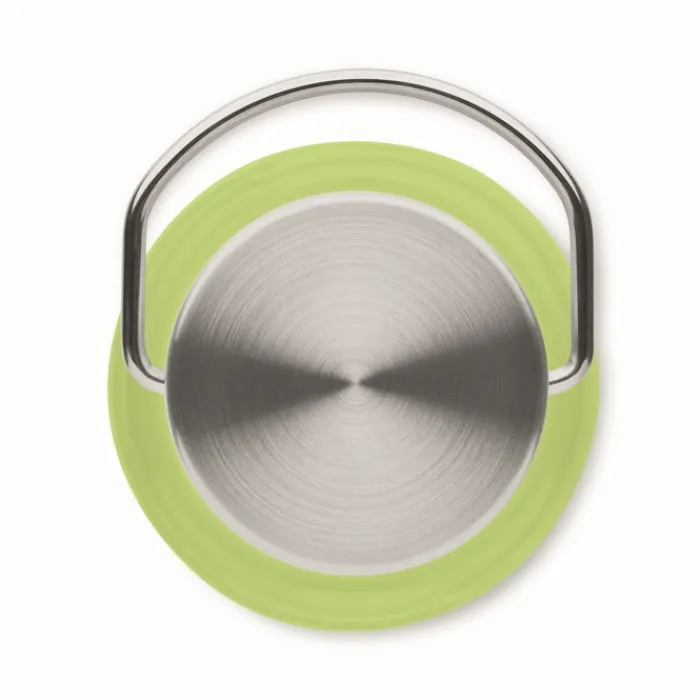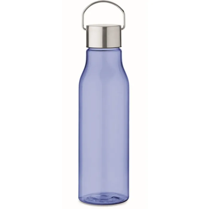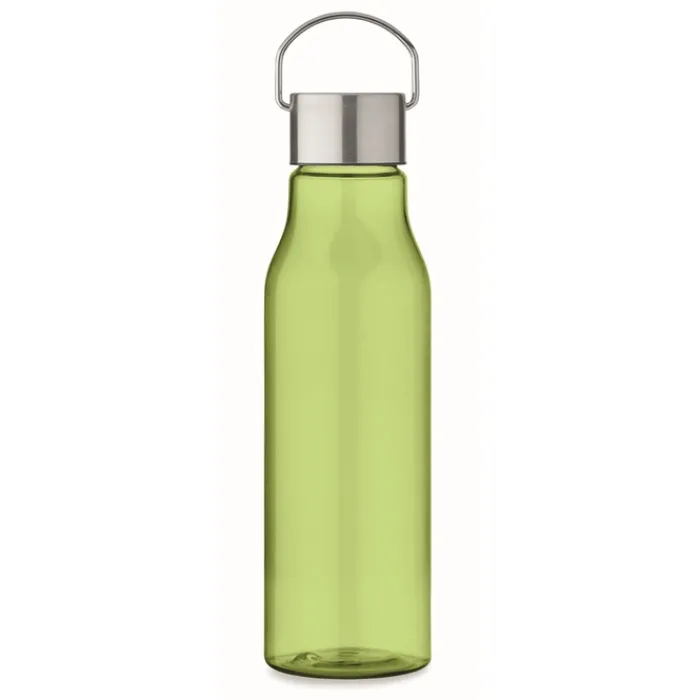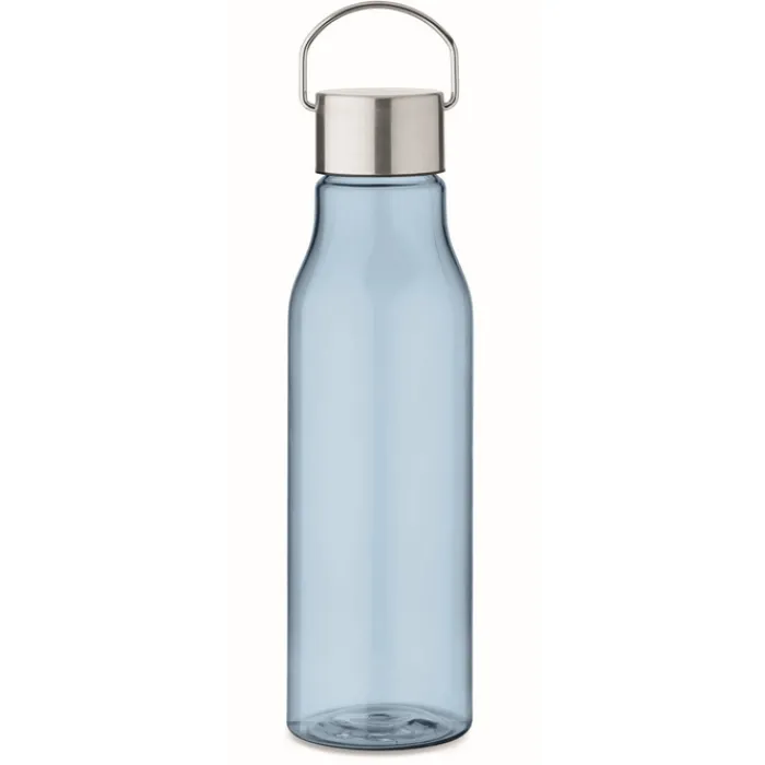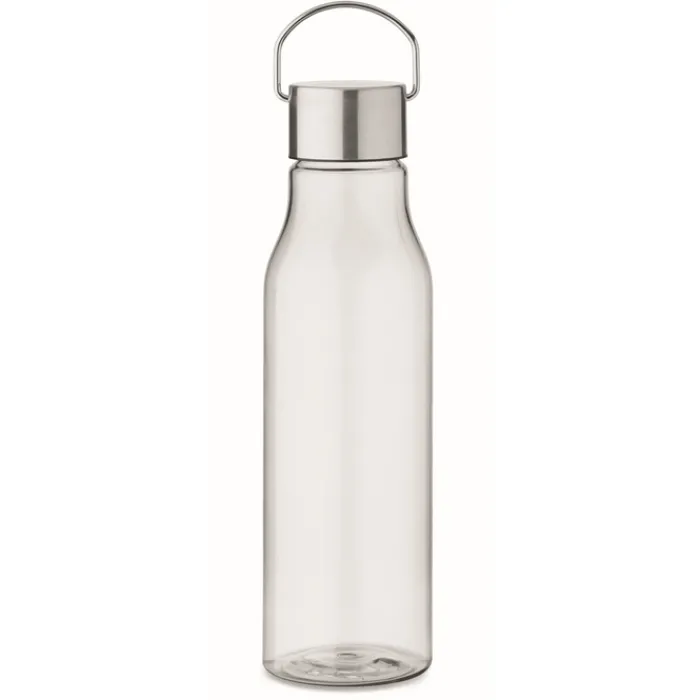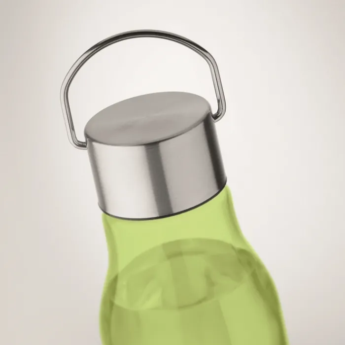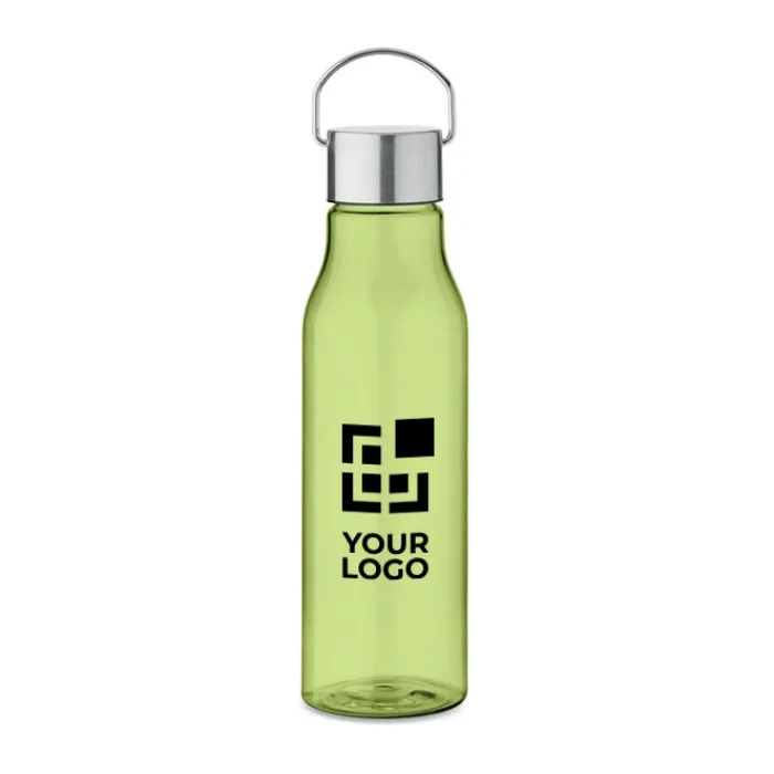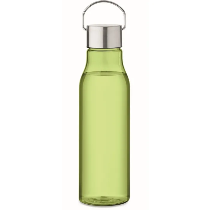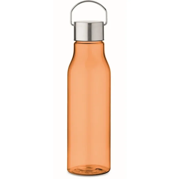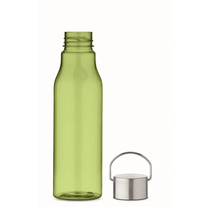 Bottiglia in RPET senza BPA dai colori trasparenti con tappo antifuga in acciaio inossidabile con maniglia. Capacità: 600ml.