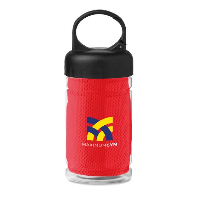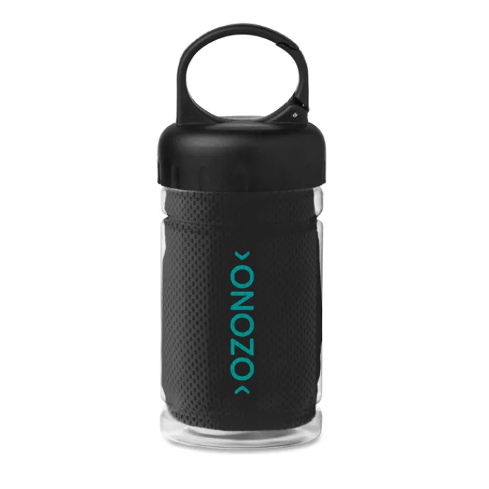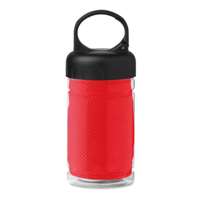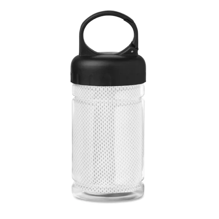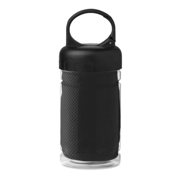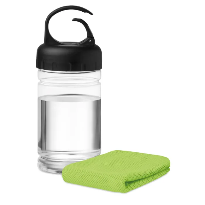 Borraccia in tritan con asciugamano sportivo in microfibra all’interno.