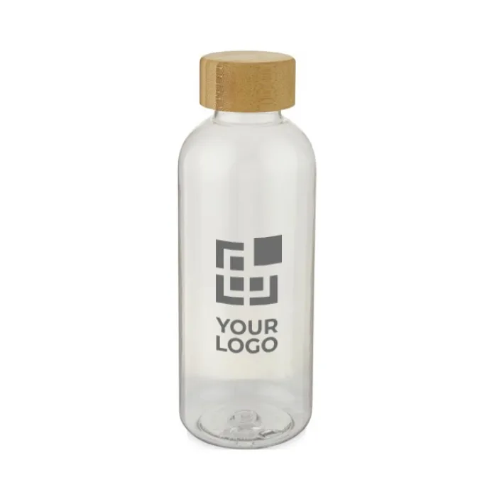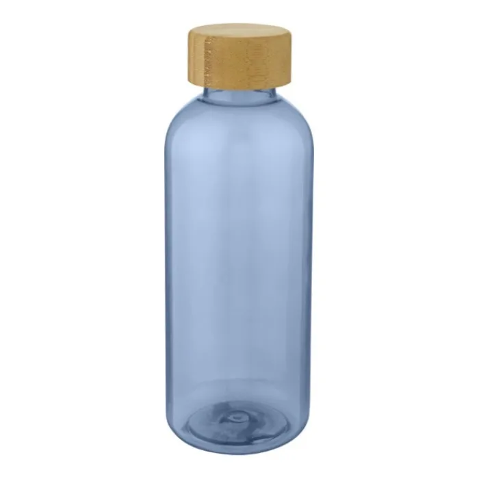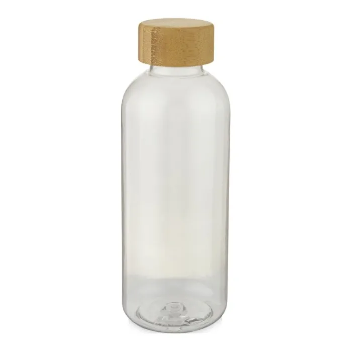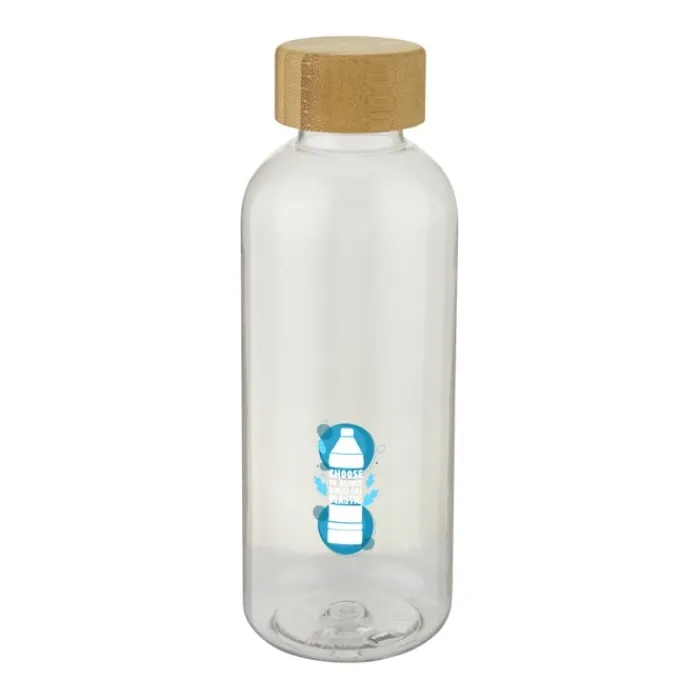 Borraccia sportiva da 650 ml caratterizza da una struttura a parete singola e da un caratteristico tappo in bambù. Il corpo della borraccia è realizzato al 100% in plastica riciclata, senza BPA. Fornita in una confezione regalo in cartone riciclato.