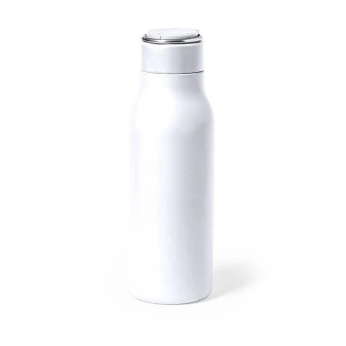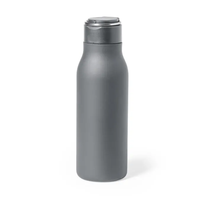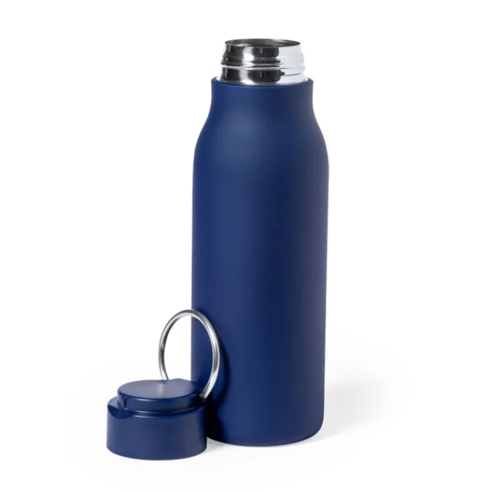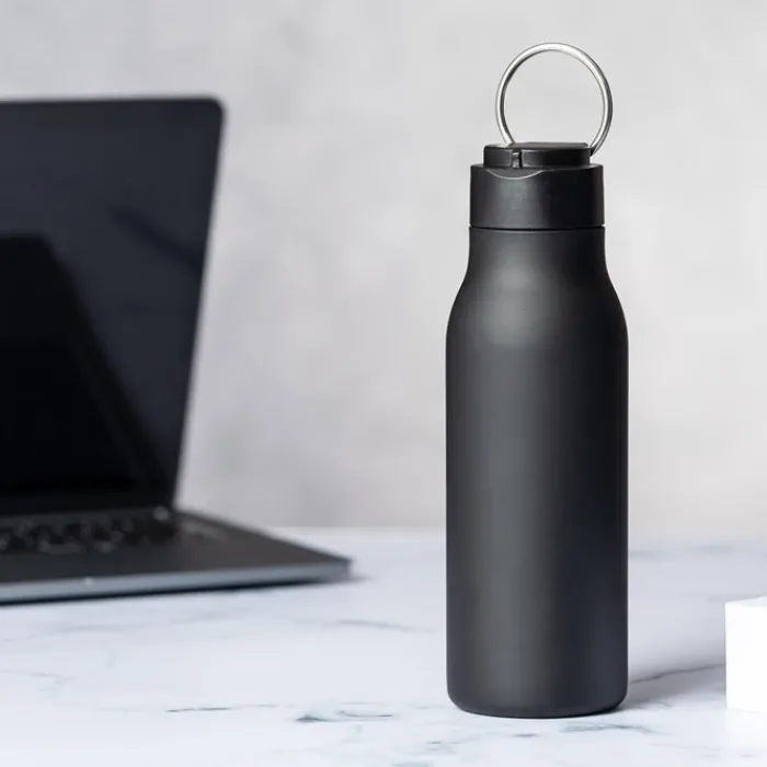 Borraccia da 600 ml, in acciaio inossidabile. Tappo a vite BPA-free con anello di trasporto integrato, pieghevole e cromato. Disponibile in un’ampia gamma di colori satinati e presentata singolarmente in una scatola di design kraft.