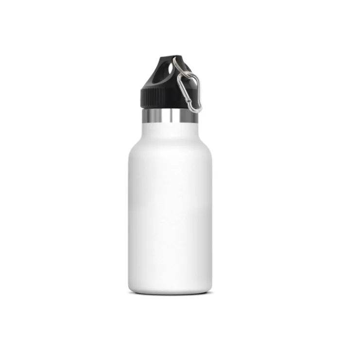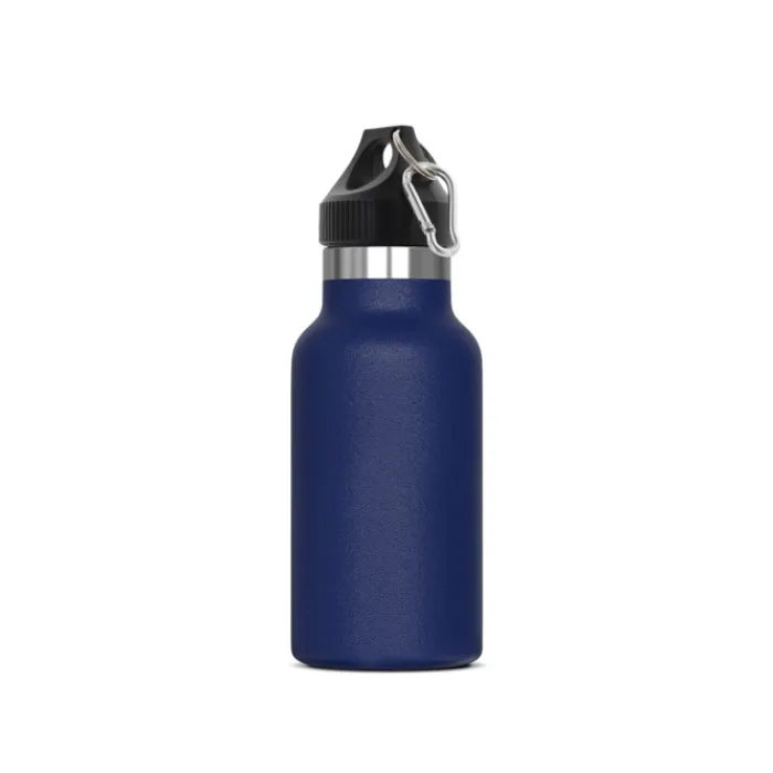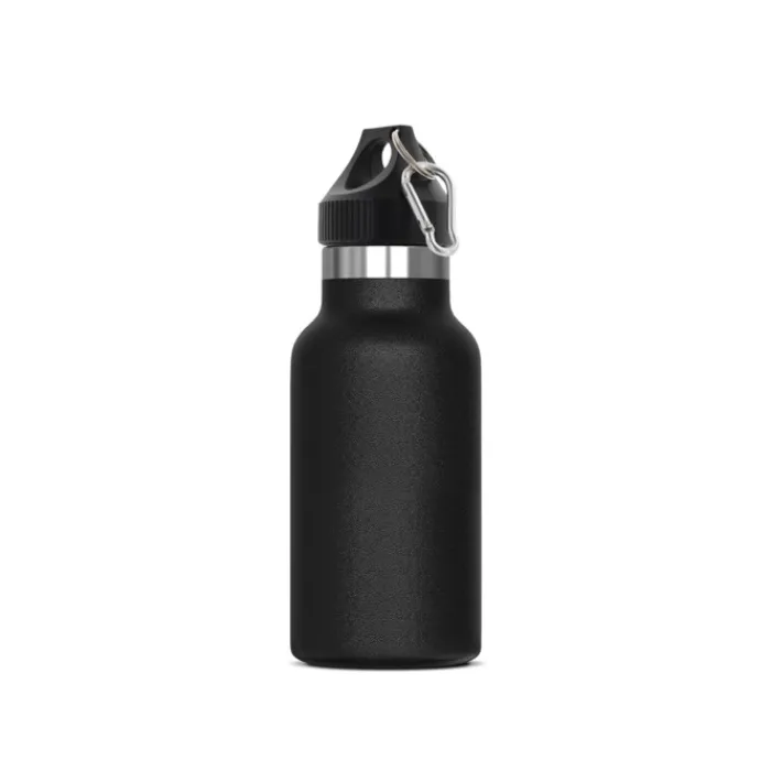 Borraccia in acciaio inossidabile a doppia parete con isolamento sottovuoto da 350ml. Mantiene la bevanda all’interno alla giusta temperatura più a lungo, grazie al vuoto tra le pareti. Le bevande rimarranno calde fino a 12 ore e/o fredde fino a 24 ore. Il tappo a prova di perdite comprende un piccolo moschettone. Ha un rivestimento in polvere che gli dona un aspetto più pregiato. È consegnata in una confezione regalo. Non lavare in lavastoviglie. Non inserire nel microonde.