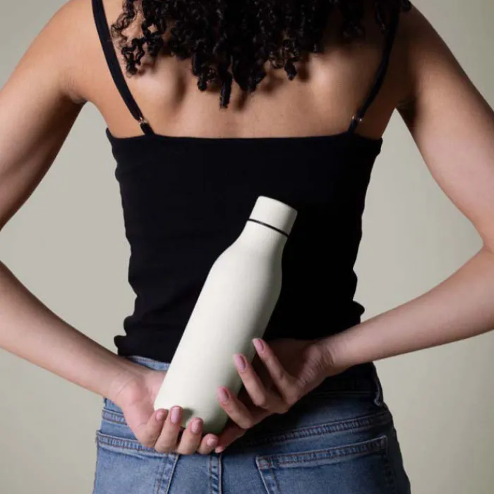 Borraccia a doppia parete da 500 ml in acciaio inox riciclato. Non usare per bevande gassate o acide