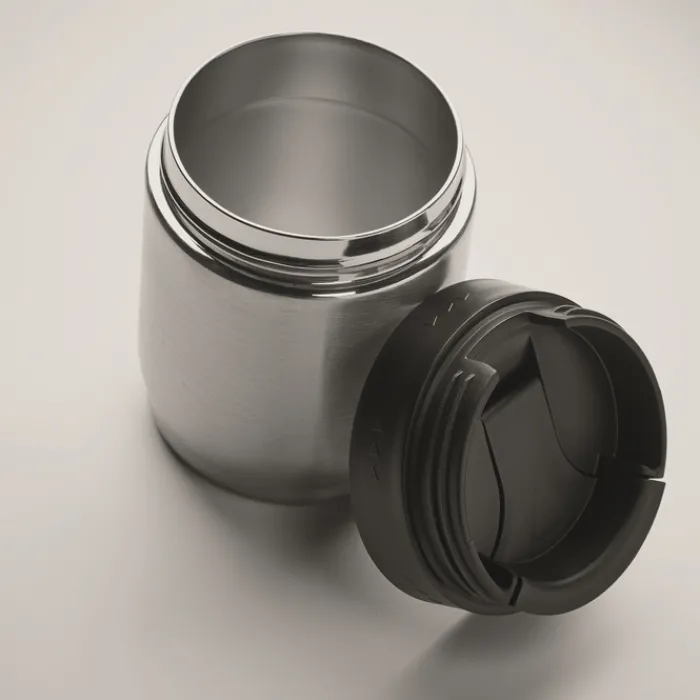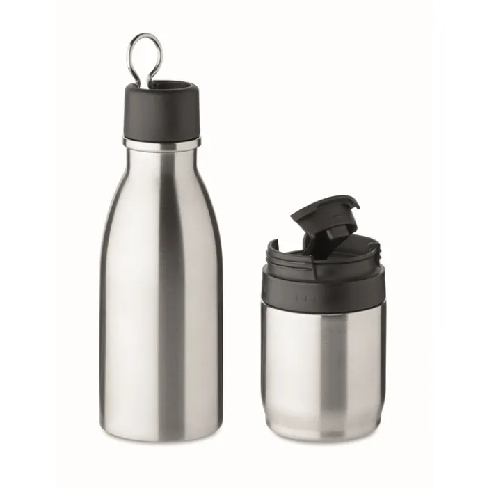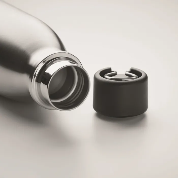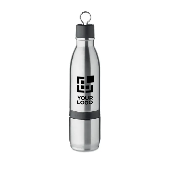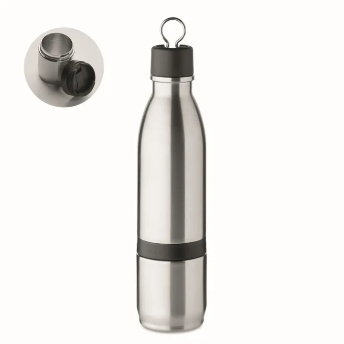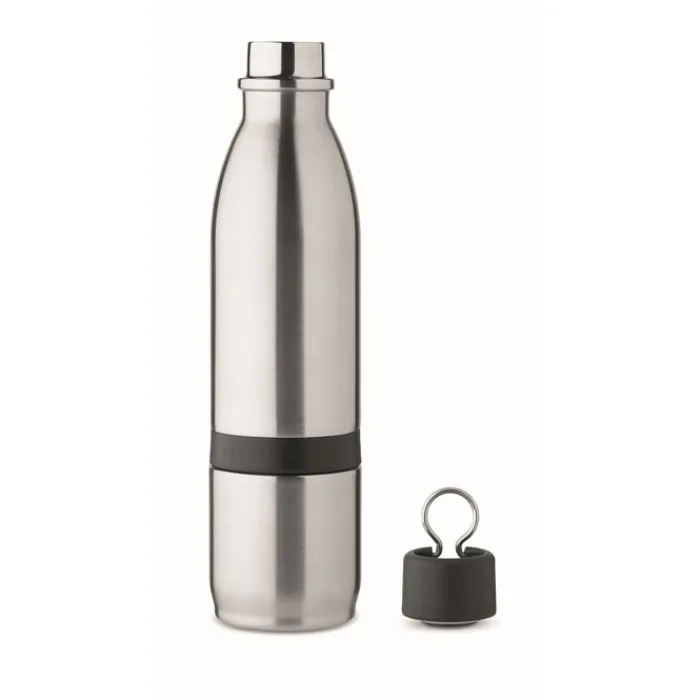Borraccia in acciaio inossidabile con isolamento sottovuoto a doppia parete. Capacità 500ml. La parte inferiore si stacca e diventa un pratico bicchiere da 310 ml.