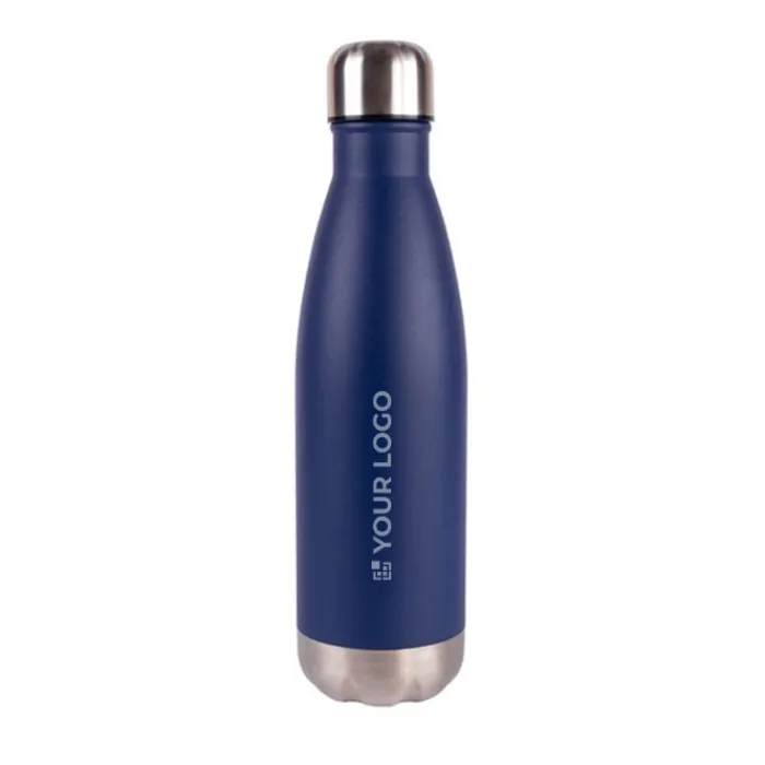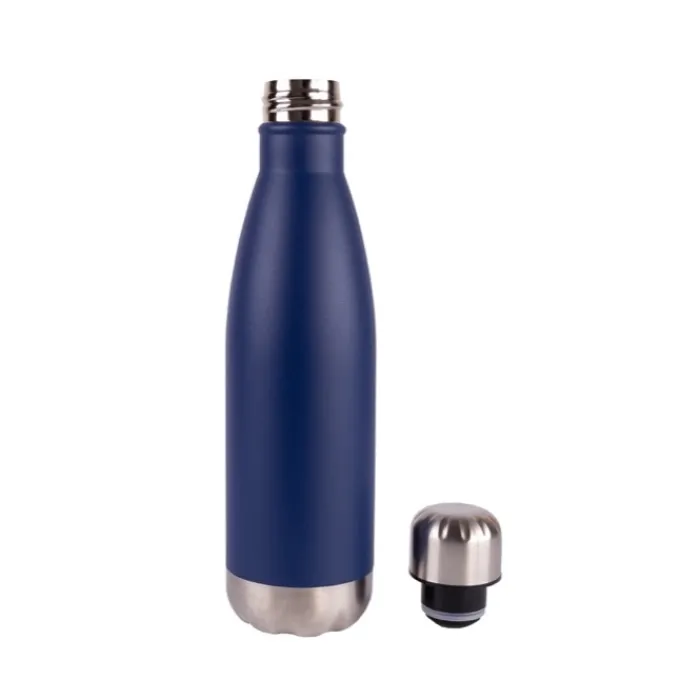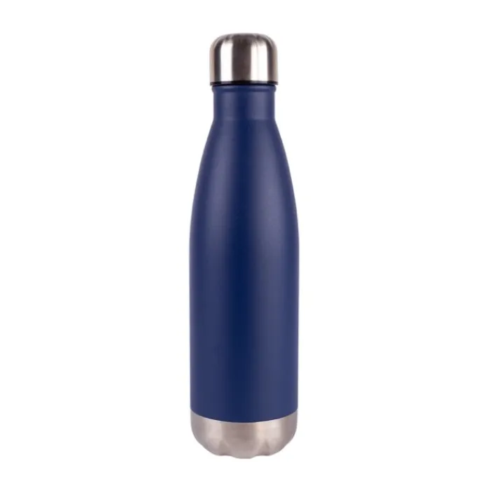 Borraccia da 500 ml in acciaio inossidabile 304 riciclato. Mantiene le bevande calde per circa 6 ore e fredde per circa 12 ore. Non inserire bevande gassare o acide. Conforme alla normativa tedesca LFGB. Consegnata in una scatola individuale.