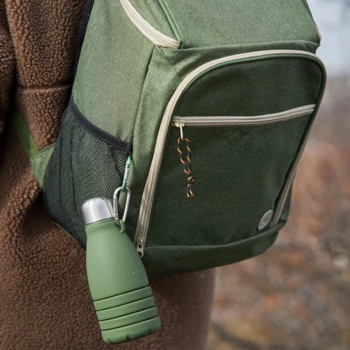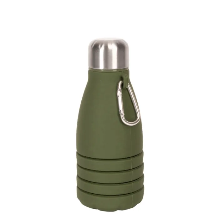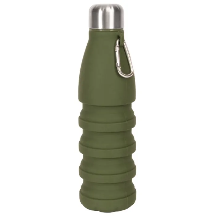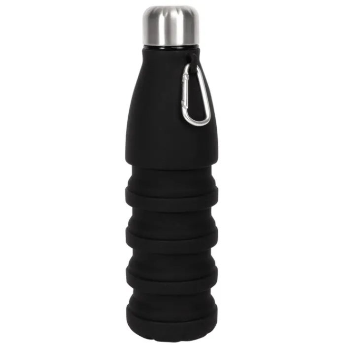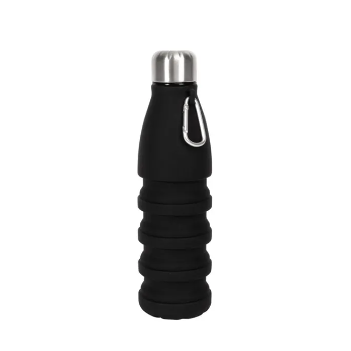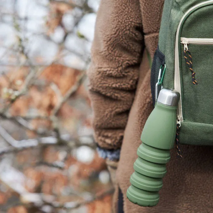 Borraccia leggera e pratica, realizzata in silicone pieghevole senza BPA. Può essere facilmente agganciata allo zaino grazie al moschettone e riposta ripiegata nella borsa quando è vuota. Si apre facilmente quando si riempie.