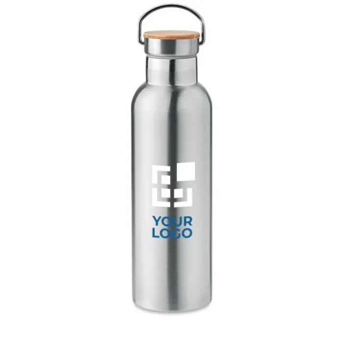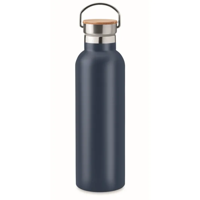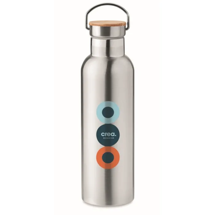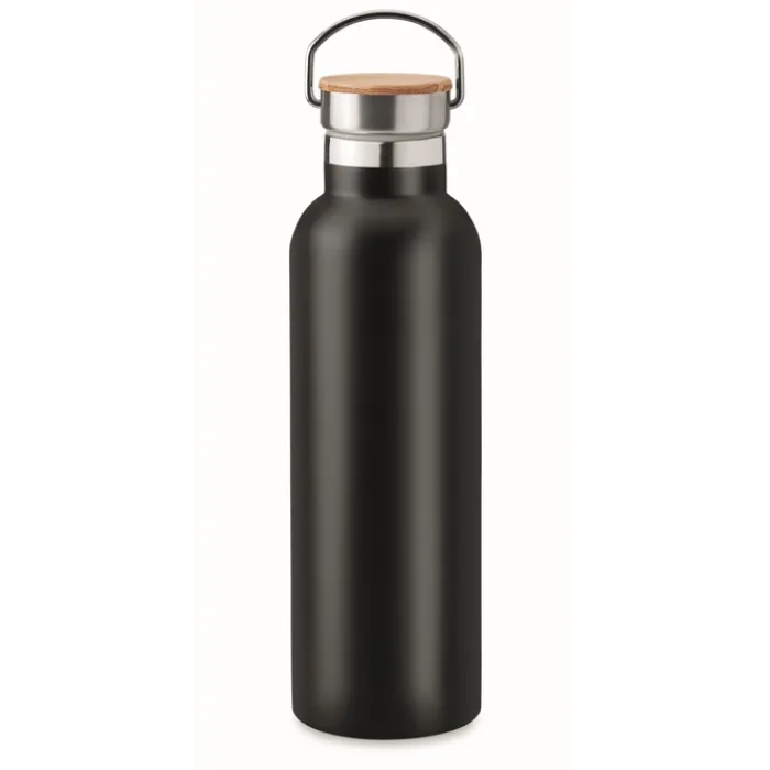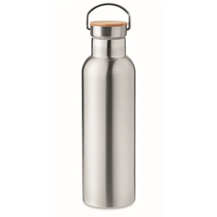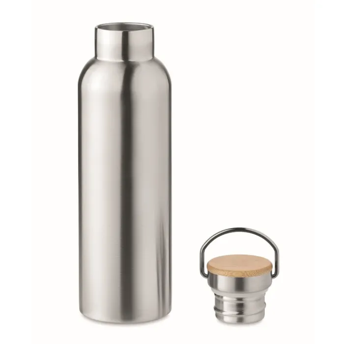 Borraccia termica a doppia parete isolante in acciaio inossidabile con tappo anti perdite con dettaglio in bambù e maniglia per il trasporto. Capacità: 750 ml.