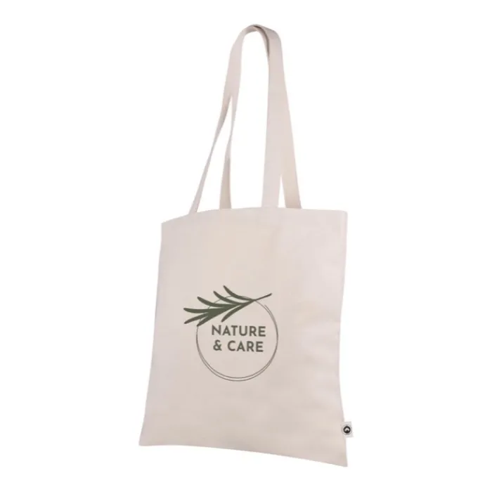 Borsa con manici lunghi, realizzata in 100% cotone da 300 gr/m². Può sopportare fino a 8kg.