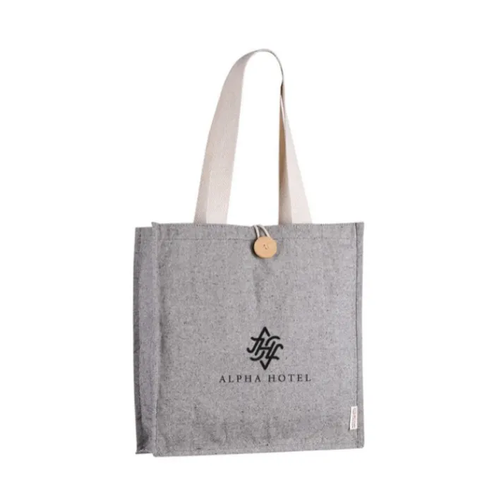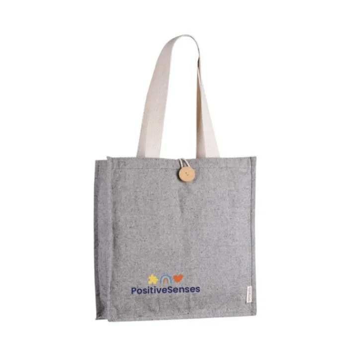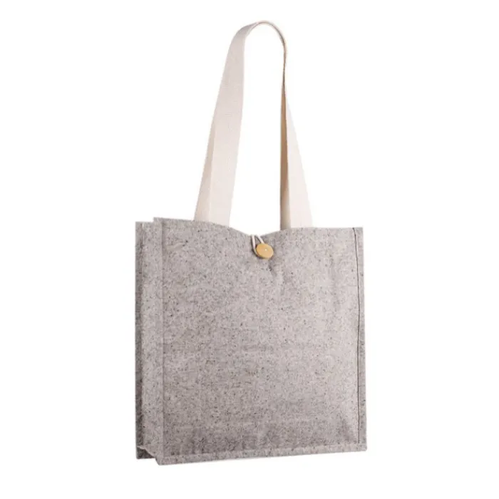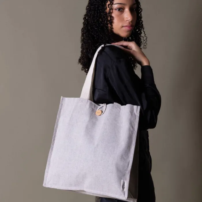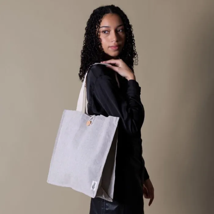Borsa con manici lunghi in cotone mélange colorato. Con bottone di chiusura.