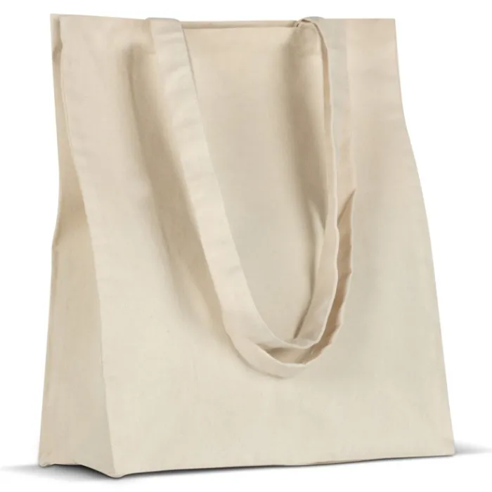 Borsa con soffietto in cotone da 280g/m² con manici in tela di cotone. Questa borsa certificata OEKO-TEX® è una scelta sostenibile per lo shopping, le attività promozionali e l’uso quotidiano.