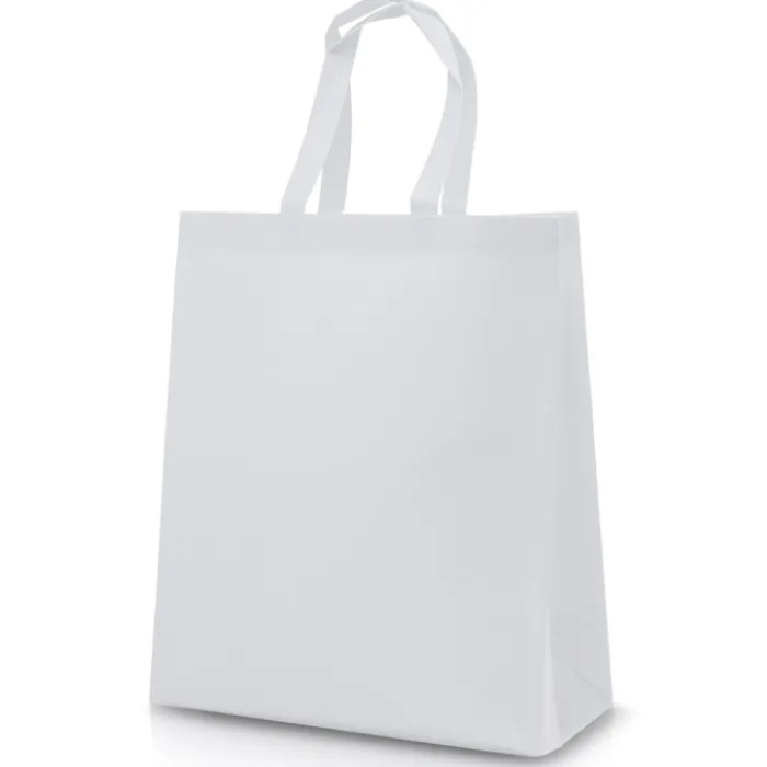 Borsa resistente in tessuto non tessuto laminato opaco da 110g/m². Disponibile in vari colori, è una valida alternativa alle borse in rafia e plastica che usiamo per la spesa.