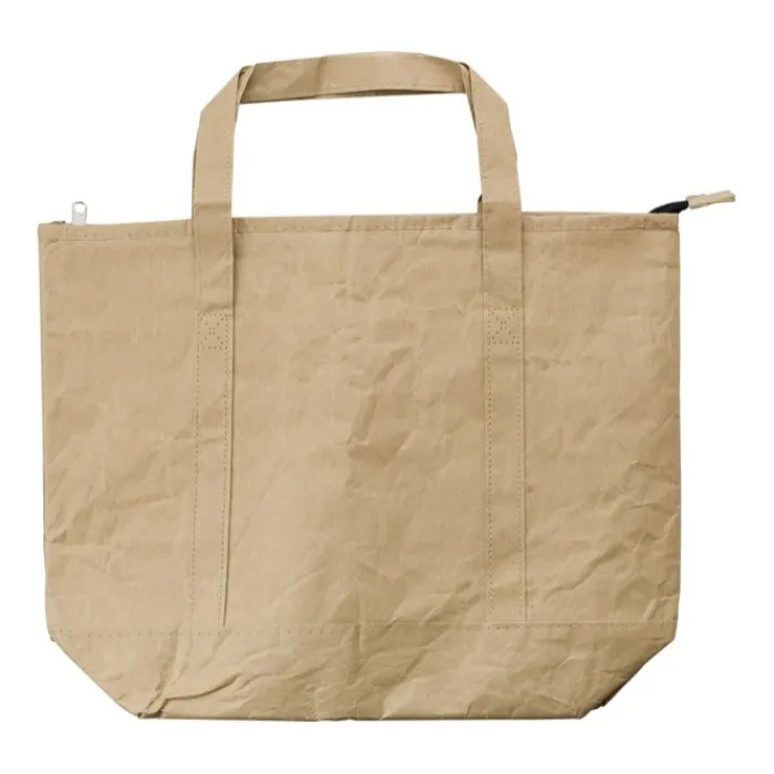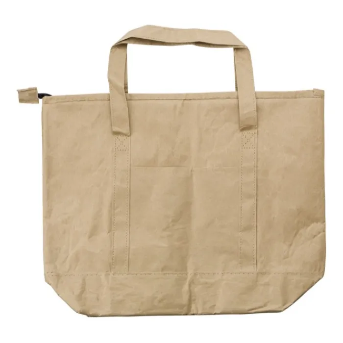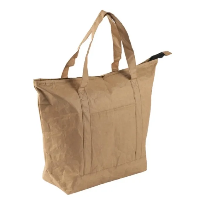 Borsa termica in carta laminata da 80g/m2 con rivestimento in alluminio. Scomparto principale con zip e tasca laterale (16,8 x 15,6 cm).