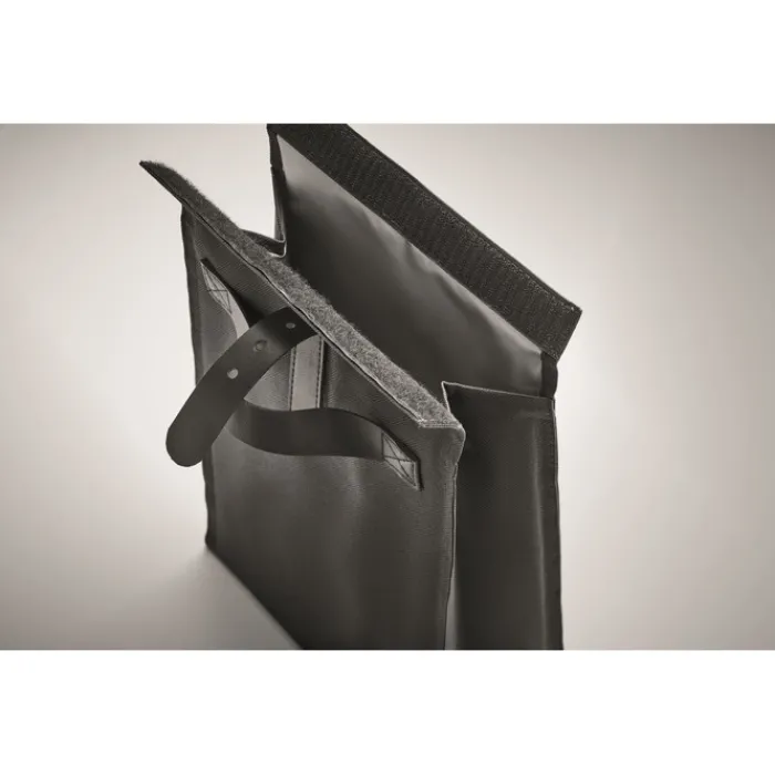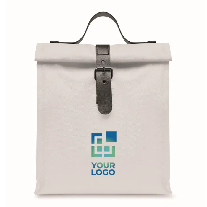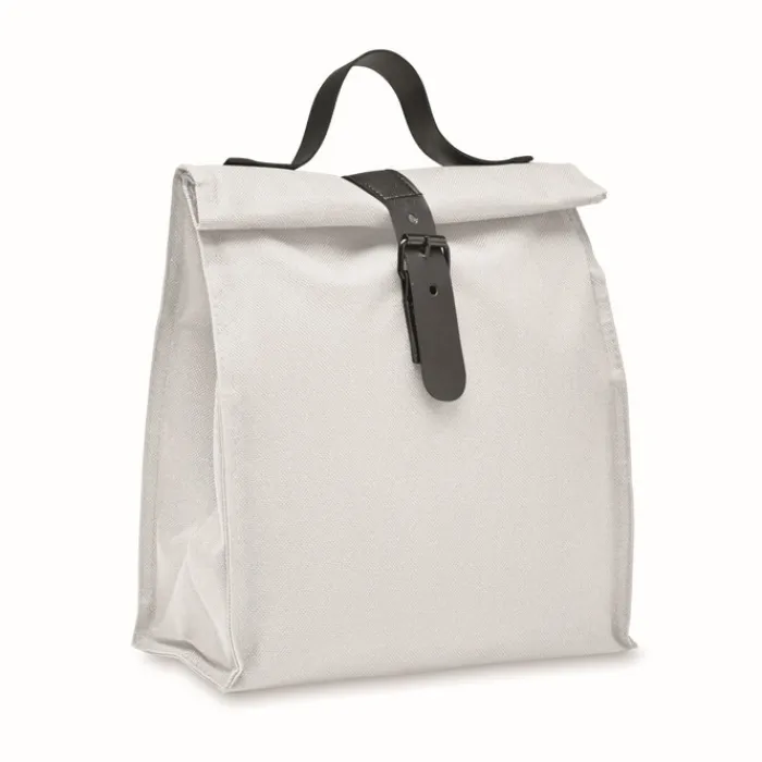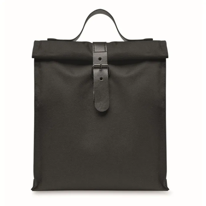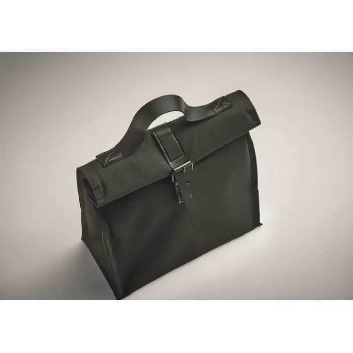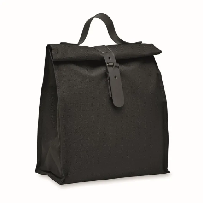 Borsa termica rolltop realizzata in poliestere 600D rPET con manico e chiusura in PU. Isolamento: schiuma PE da 3 mm con PEVA.