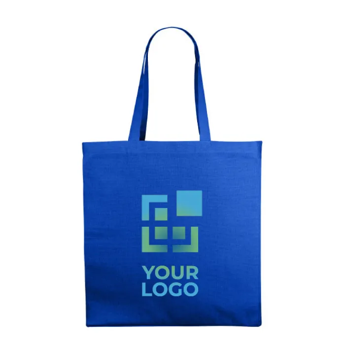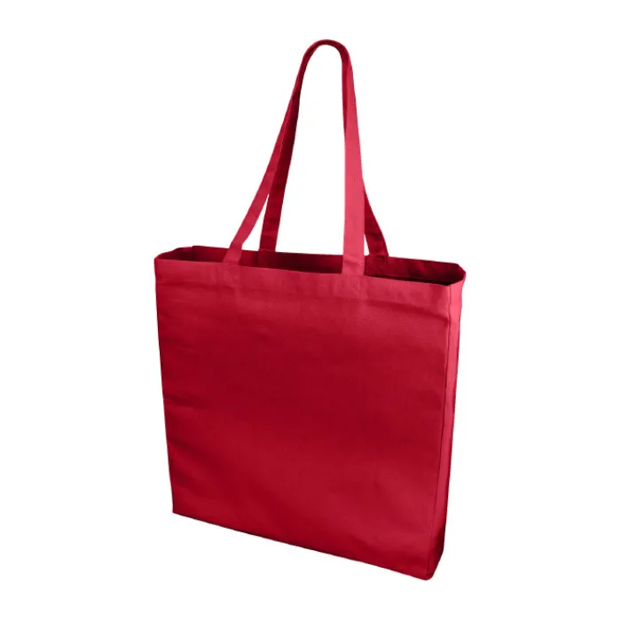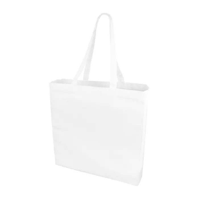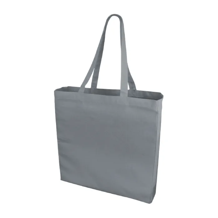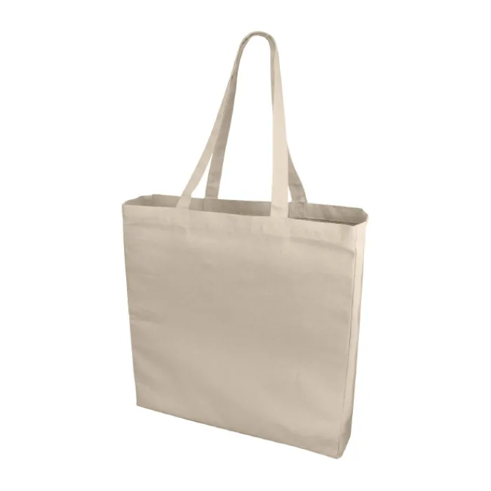Borsa shopper promozionale con soffietto e scomparto principale aperto. Lunghezza dei manici circa 62 cm. Realizzata in cotone da 220 g/m².