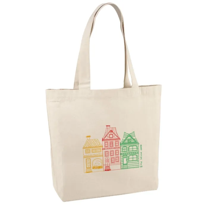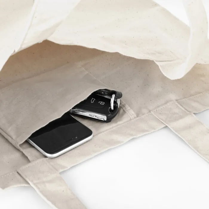 Borsa realizzata in 100% tela di cotone da 280 g/m². Con tasca interna e manici di 65 cm.
