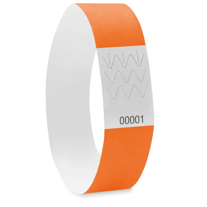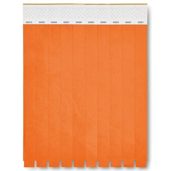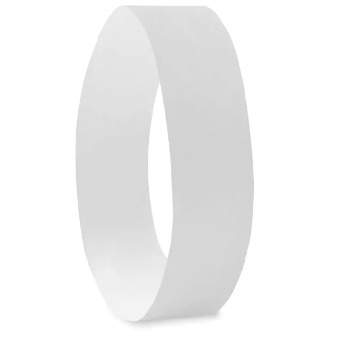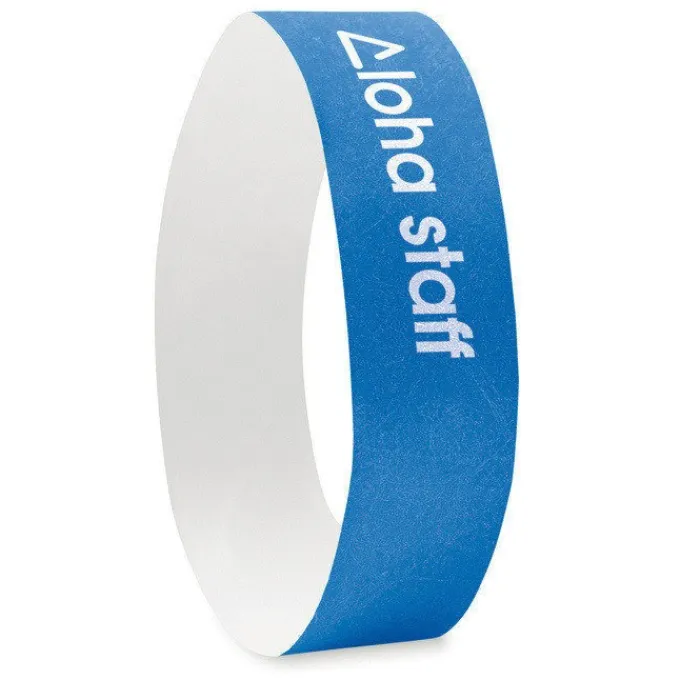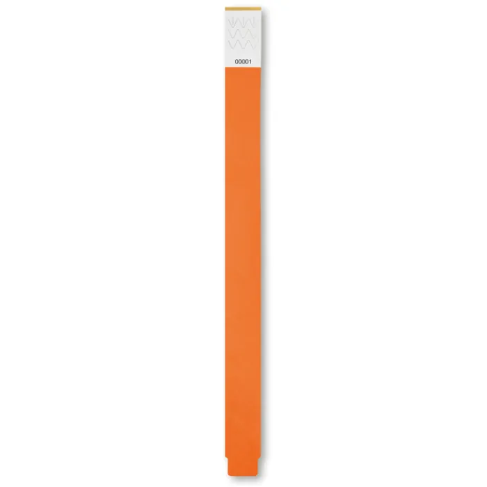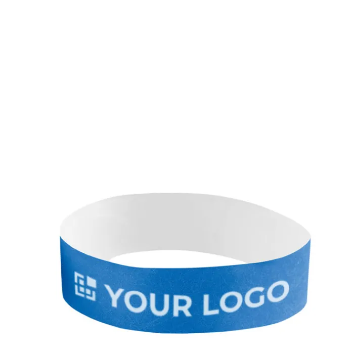 Braccialetti personalizzati per eventi DuPont ™ Tyvek® . Ogni braccialetto è marchiato da un numero unico. Il prezzo unitario si riferisce a un foglio che è composta da 10 braccialetti in carta personalizzabili. Quando scegliete la quantità, state scegliendo la quantità di fogli, per cui se selezionare 25 unità, riceverete 25 “fogli” per un totale di 250 braccialetti. Larghezza 19mm.