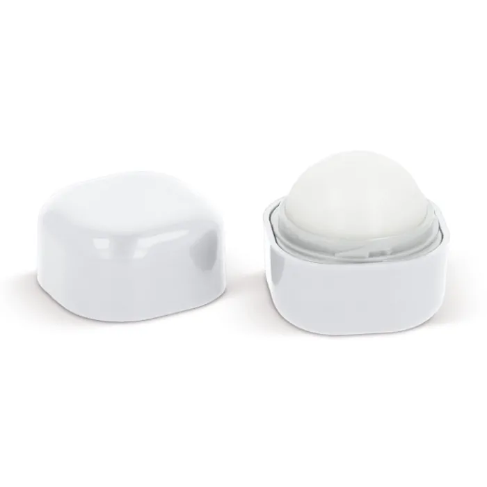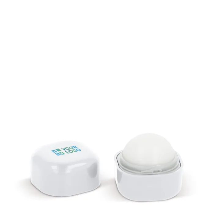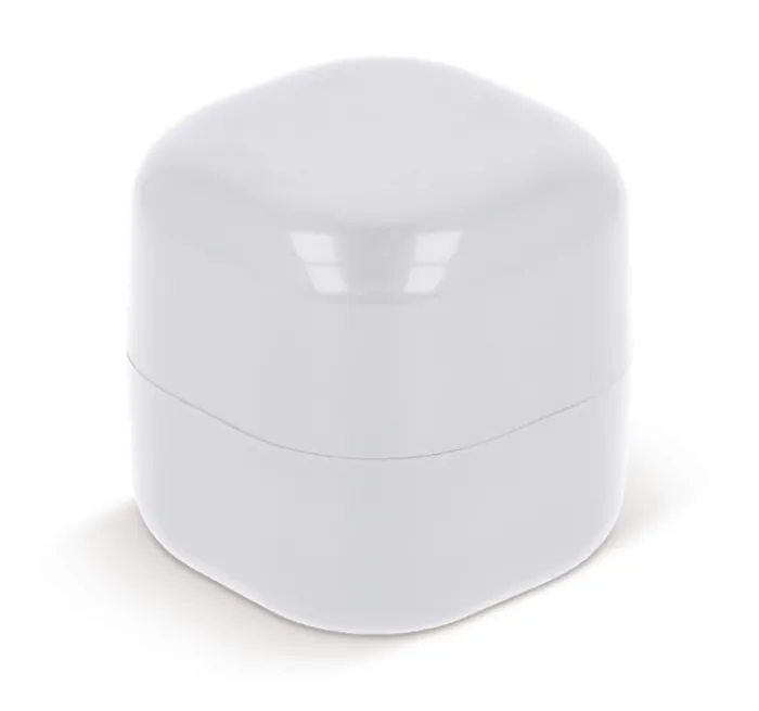 Burrocacao in scatolina di plastica ABS a forma di cubo. Contiene crema solare (SPF15) in modo che le tue labbra siano sempre protette dal sole.