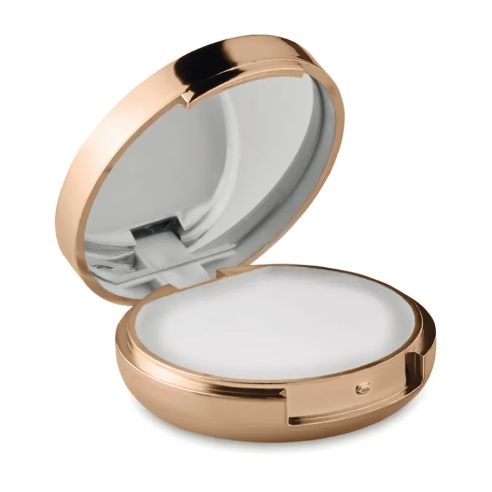 Specchietto con lucidalabbra con finitura metallizzata. SPF15.