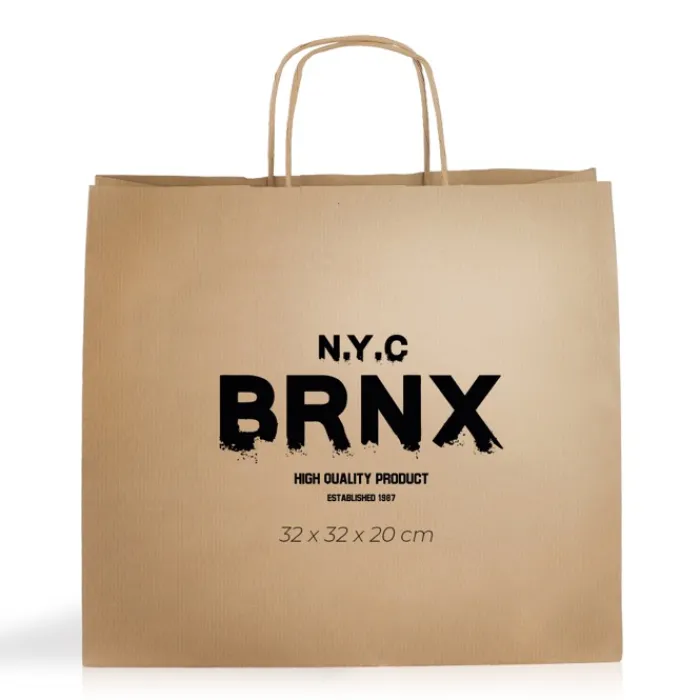 Busta in carta kraft da 100g/m² dalle dimensioni: 32 x 32 x 20 cm. Scegli la carta, personalizza e contribuisci a un pianeta più sostenibile! Prodotta in Portogallo.