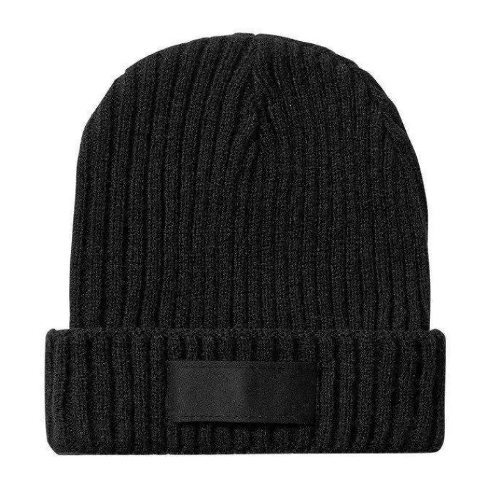 Morbido e caldo berretto in maglia a coste, realizzato in materiale acrilico elastico. Include un’etichetta personalizzabile ed è disponibile in tre differenti colori invernali.