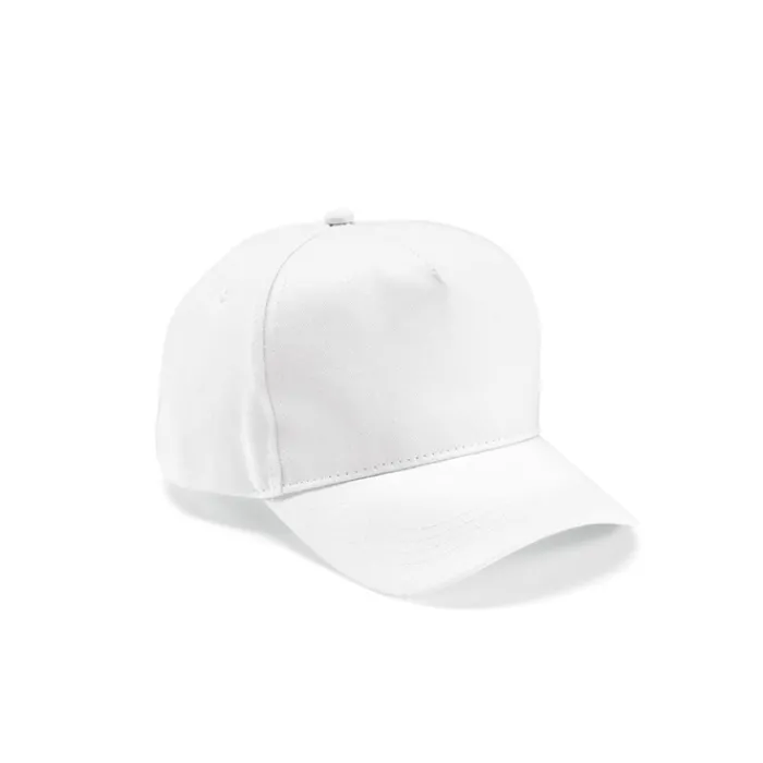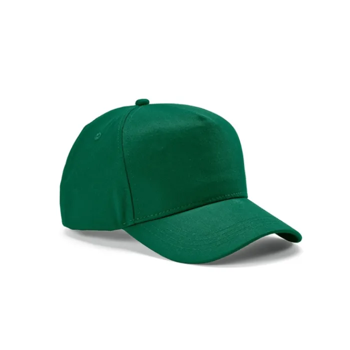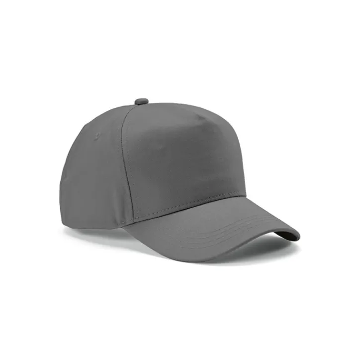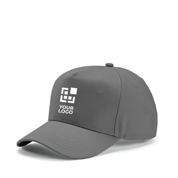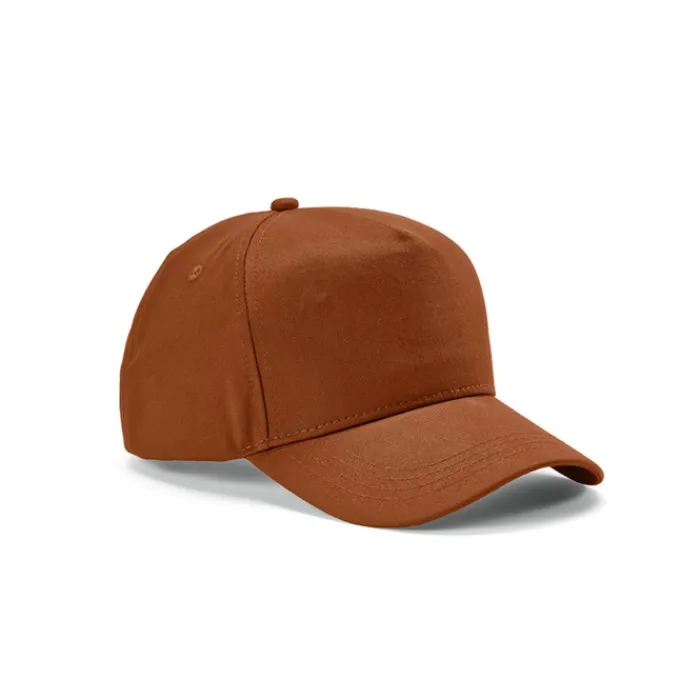 Cappello a 5 pannelli in cotone riciclato da 280 g/m², regolabile con fibbia. Viene fornito in un sacchetto di plastica biodegradabile individuale.