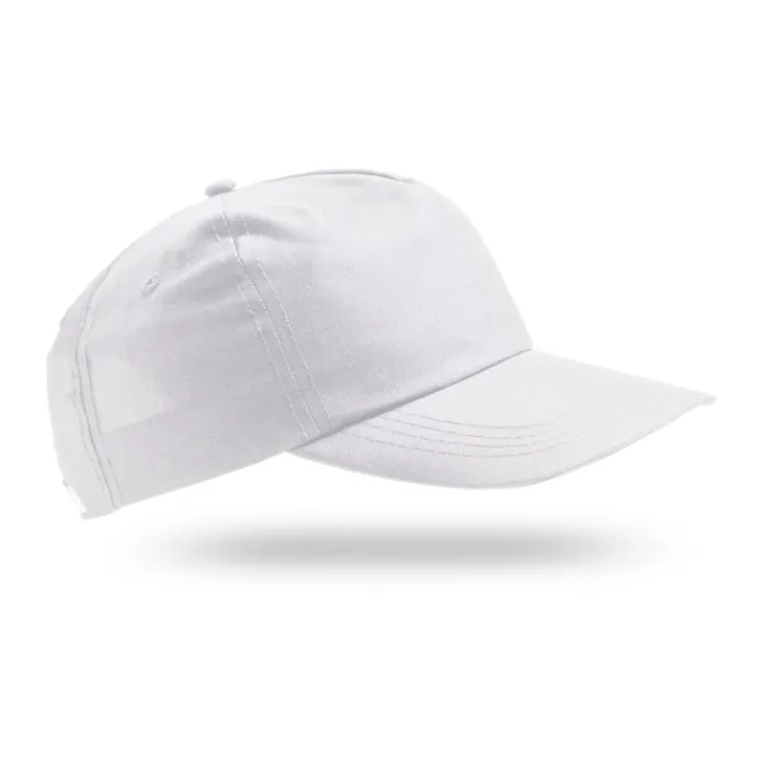 Cappellino promozionale per adulti a 5 pannelli con pannello frontale ideale per la personalizzazione. Chiusura in velcro. Realizzati in poliestere da 125 g/m², tuttavia i modelli in bianco, verde chiaro e rosa, presentano alcune quantità in cotone. I modelli in rosso e blu sono realizzati in cotone.