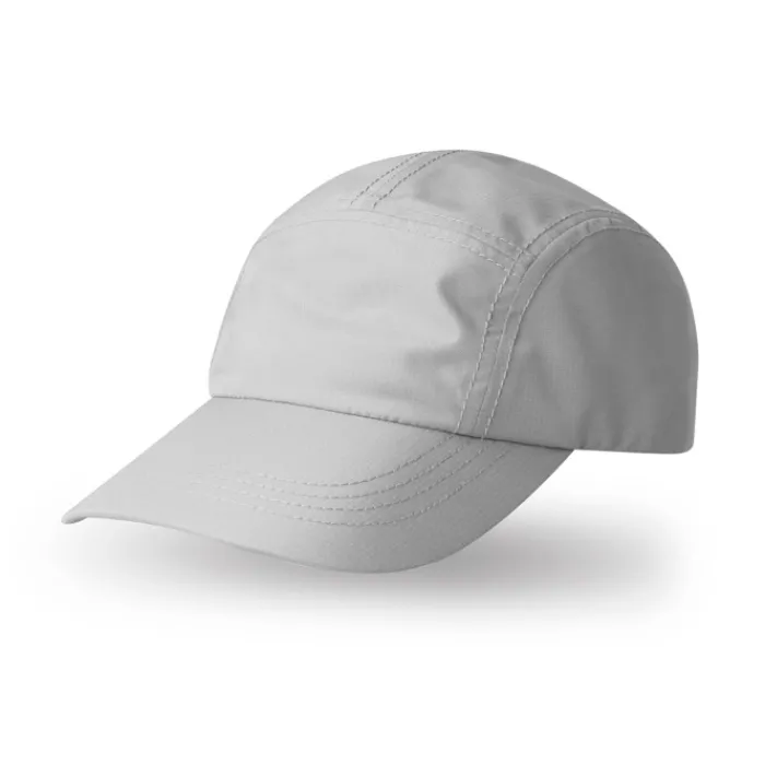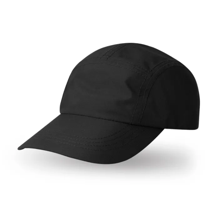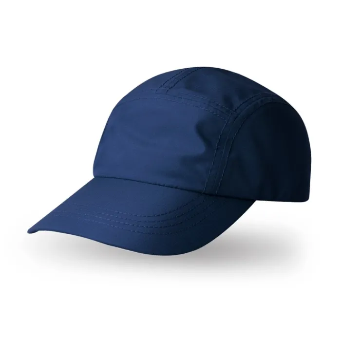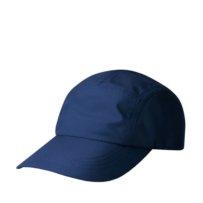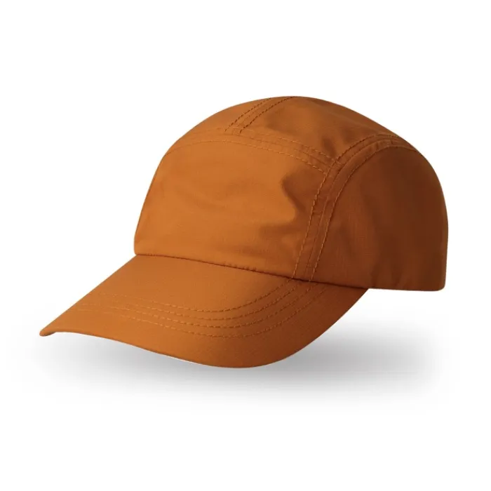 Cappellino a 5 pannelli non strutturati con visiera curva, ideale per tutte le stagioni. Realizzato in poliestere ripstop riciclato da 85g/m², ha una fodera interna in rete e fascia antisudore dry-tech in poliestere riciclato. Cuciture termosaldate per massima impermeabilità. Chiusura con fibbia in metallo.