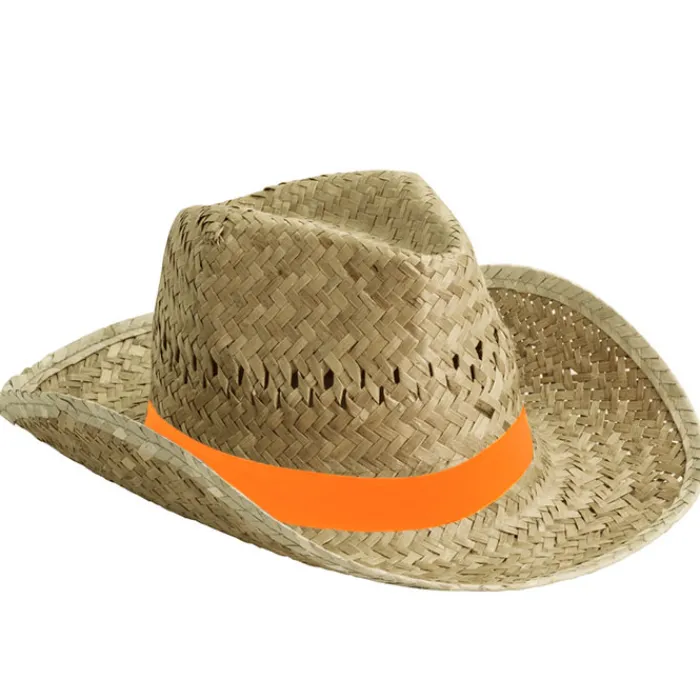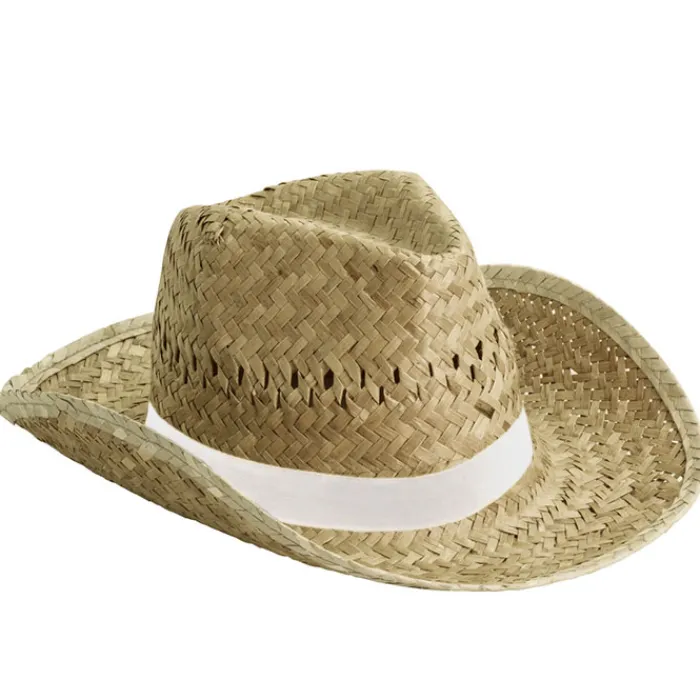 Cappello in paglia, di colore chiaro. Taglia unica. Personalizzabile sul nastro che lo circonda. Nel caso in cui ordiniate i cappelli senza stampa, il nastro arriva separato dal cappello.