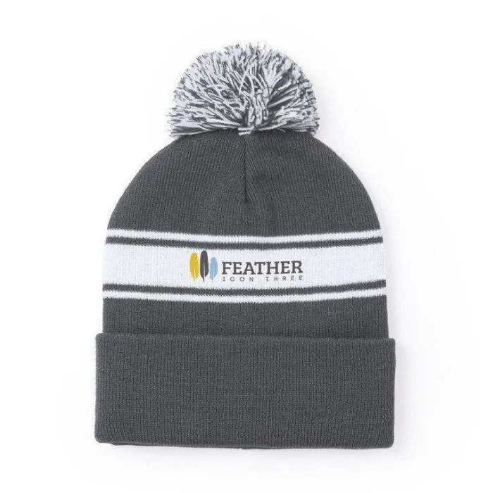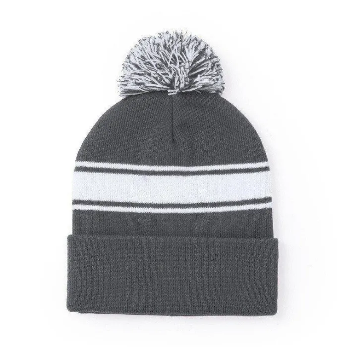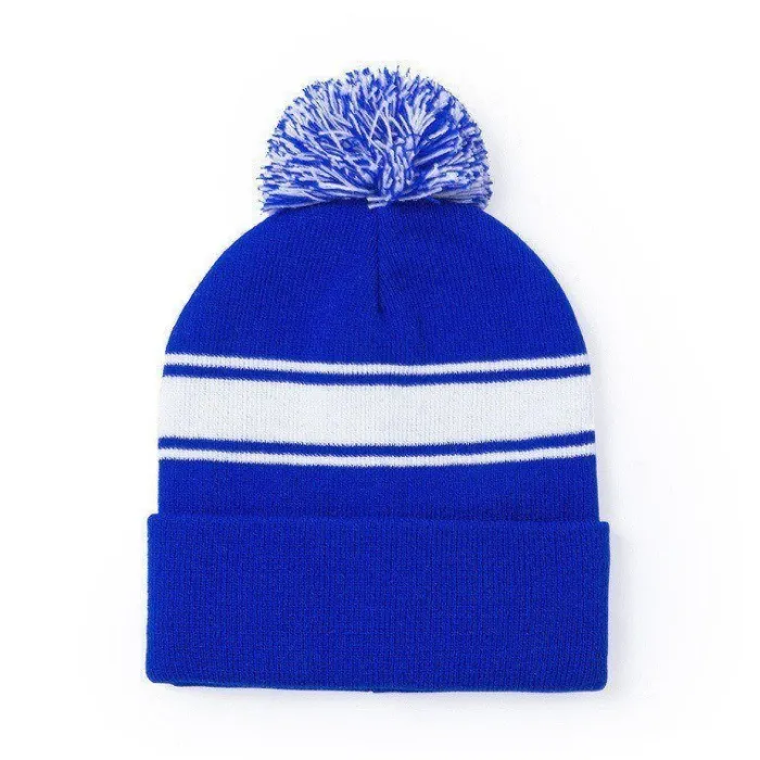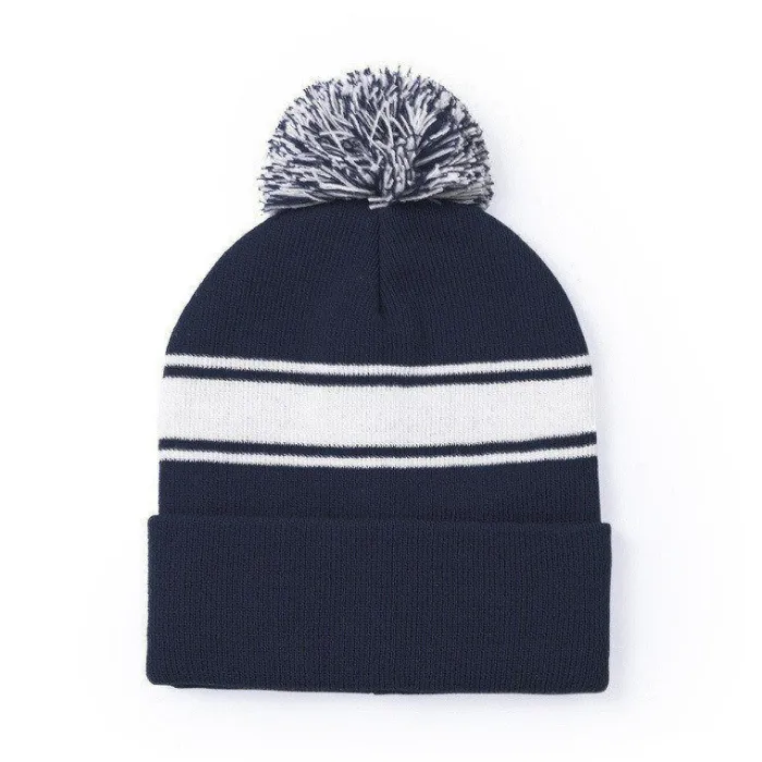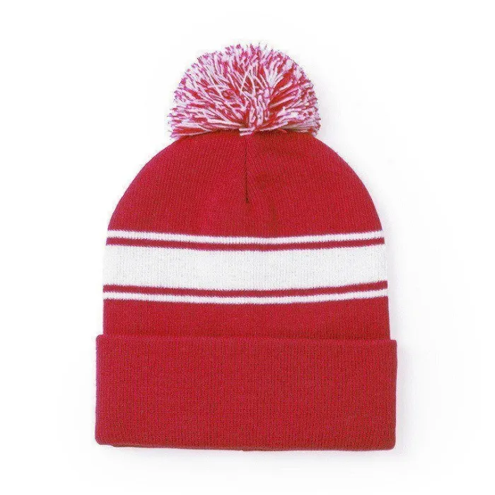 Cappello zuccotto personalizzabile in acrilico morbido e caldo. Disponibile in vari colori, ha una fascia bianca al centro e un pom pom bicolore abbinato.