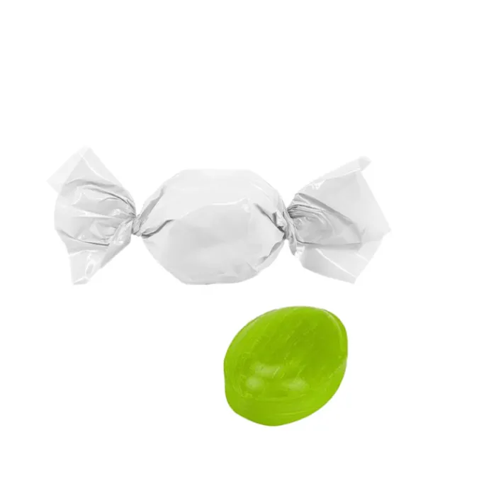 Caramelle preparate utilizzando solo aromi e coloranti naturali. Sapore intensamente fruttato e profondo. Sapori disponibili: fragola, mela, arancia, limone, lampone, lampone acido, ciliegia, menta e cocacola. Confezionate con incarto a doppia torsione riciclabile personalizzabile. Ognuna pesa all’incirca 5g per cui 1kg equivale a circa 200 caramelle.
