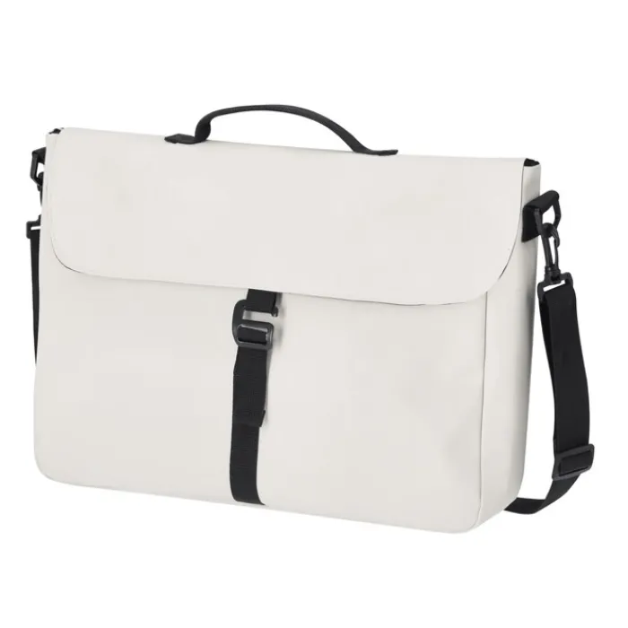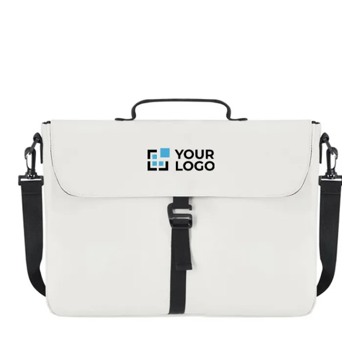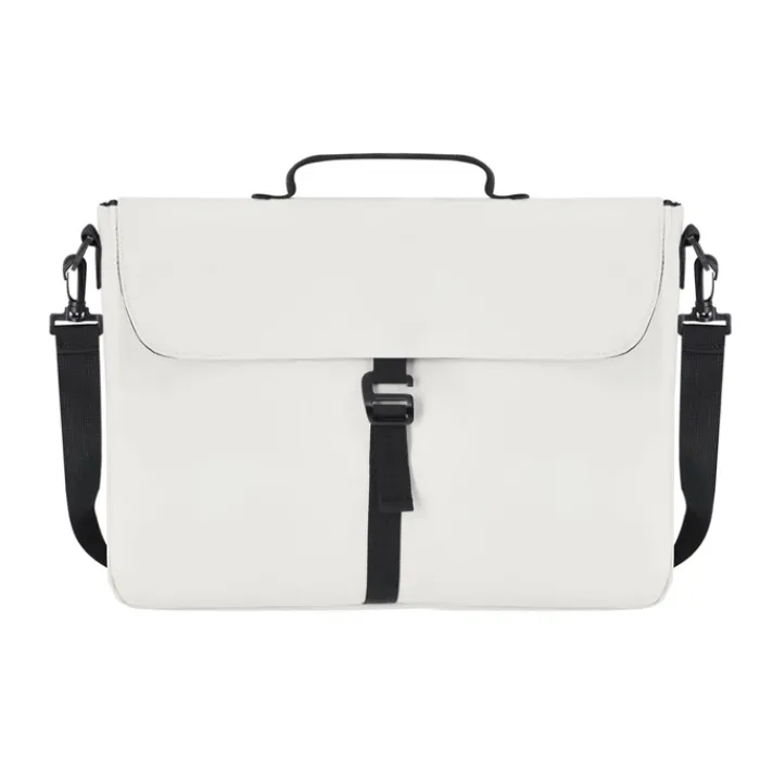 Cartella portadocumenti realizzata in morbido PU, con sistema di chiusura a fibbia. Ampia capacità interna con scomparto imbottito per portatili fino a 15 pollici. Include tracolla rimovibile e imbottita.