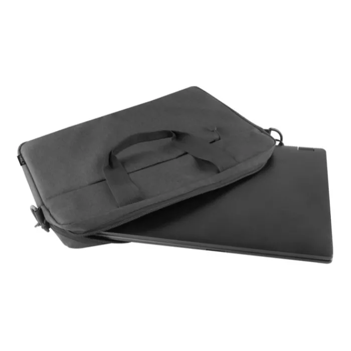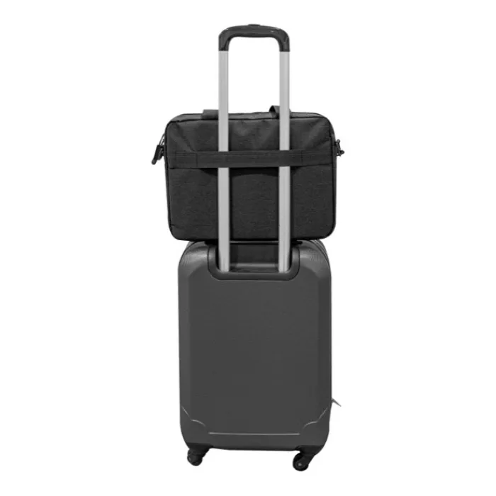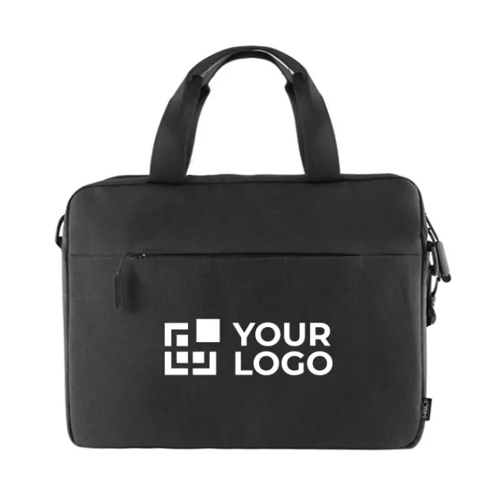 Cartella realizzata in poliestere RPET, con interno imbottito per contenere computer portatili fino a 15 pollici. Dotata di una fascia posteriore per poterla agganciare al trolley, di comode maniglie per il trasporto e di una tracolla regolabile.