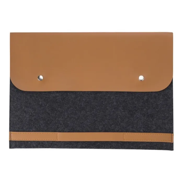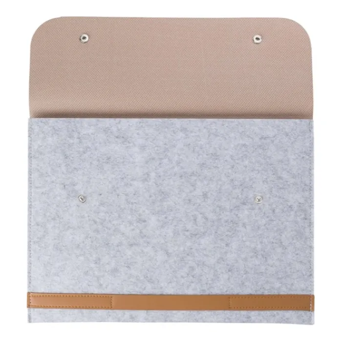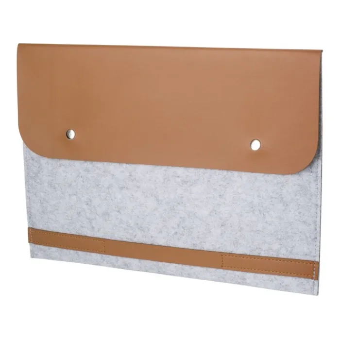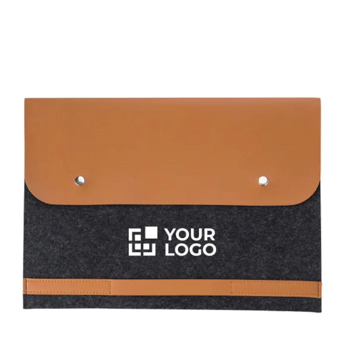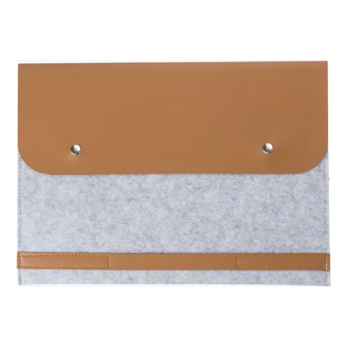 Cartelle porta computer in feltro RPET con dettagli in PU. Scomparto adatto per portatili da 14 pollici e chiusura con due bottoni.