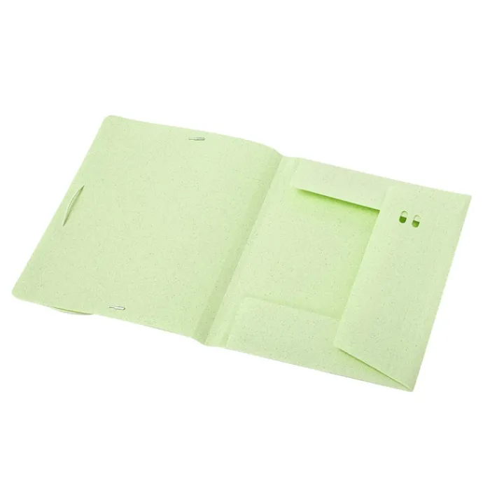 Cartellina portadocumenti flessibile con elastico di chiusura, disponibile in vari colori. Realizzata in fibra di grano. La fibra di grano favorisce l’utilizzo di materie prime naturali, riducendo così le emissioni inquinanti.