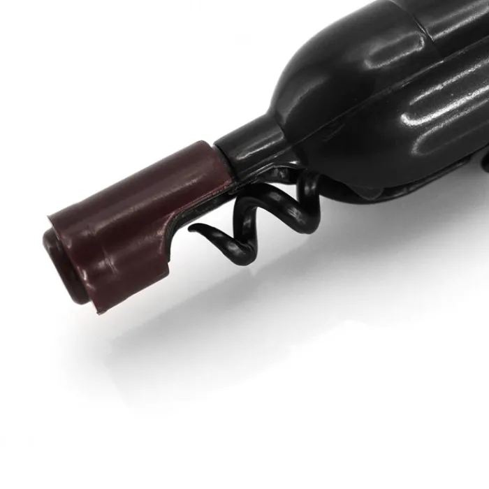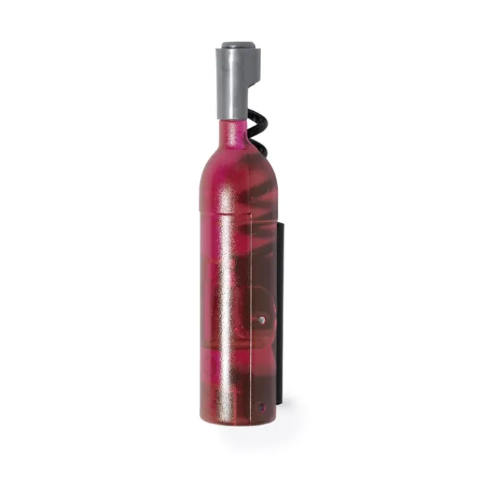 Divertente cavatappi magnetico a forma di bottiglia di vino nei colori bianco, rosso e rosé. Con corpo in originale finitura traslucida e funzione di apertura.