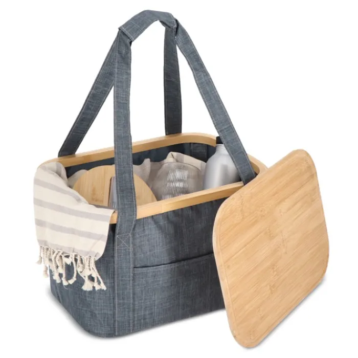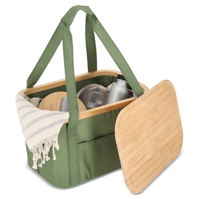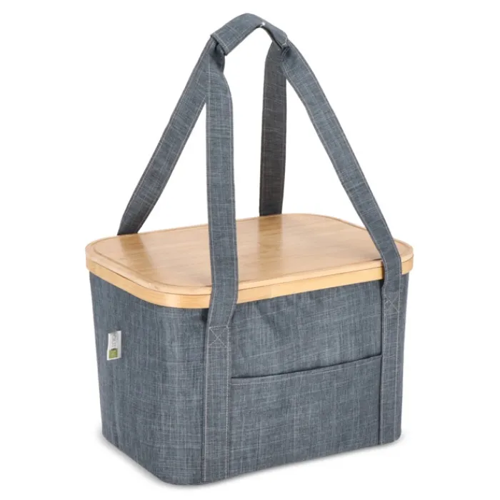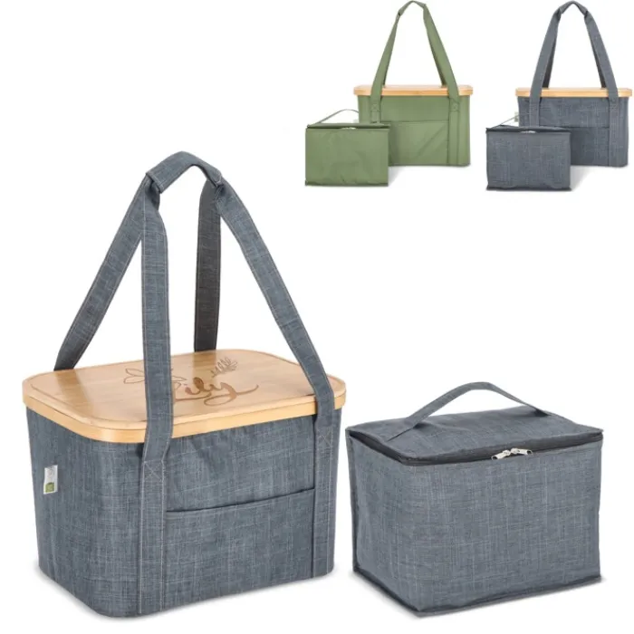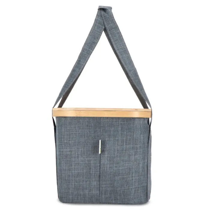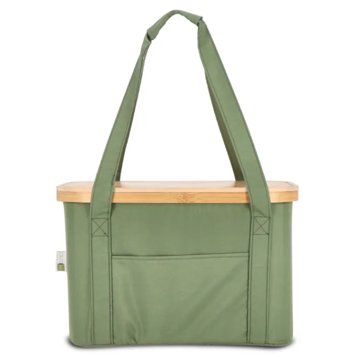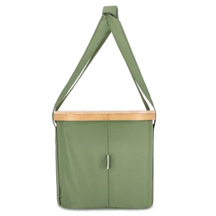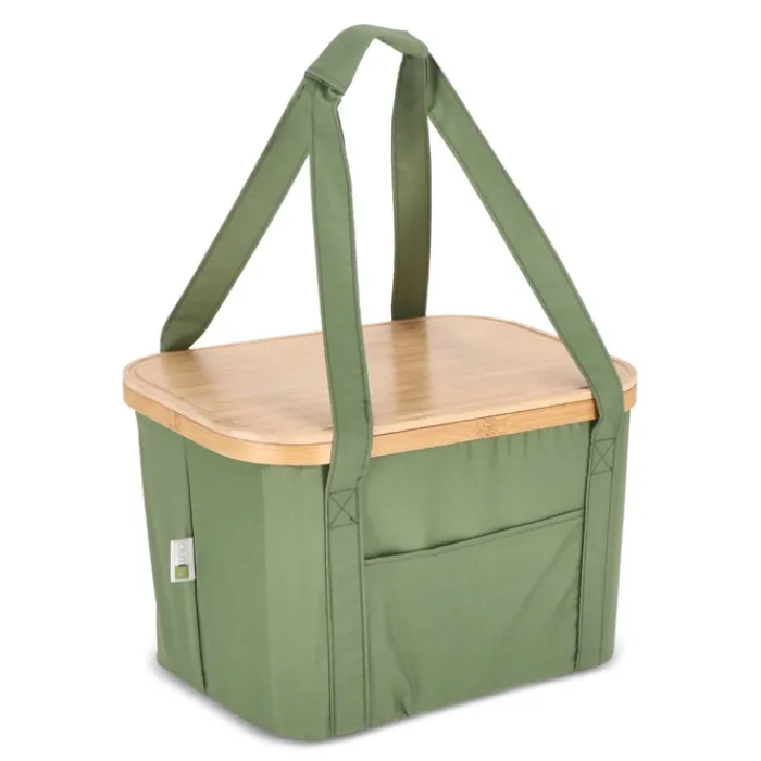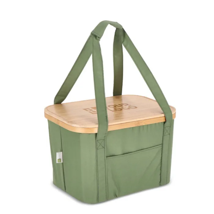 Il cestino/frigo pieghevole è più di una soluzione elegante per lo stoccaggio: è una borsa frigorifero versatile, ideale per le attività all’aperto. Realizzato con materiali riciclati e bambù, offre anche una funzionalità pratica. All’interno c’è una borsa frigorifero coordinata con manico e foglio isolante, così il cestino può anche essere utilizzato come borsa frigorifero per mantenere freddi cibi e bevande. Il cestino ha un coperchio in bambù che può anche servire come tagliere ed è dotato di pratiche tasche anteriori e posteriori per avere più spazio di stoccaggio. Grazie alle sue robuste maniglie, puoi portare il cestino ovunque, con o senza la borsa frigorifero. Sia il cestino che la borsa sono pieghevoli, risparmiando spazio quando non vengono utilizzati. Sia la tasca frontale che il coperchio in bambù offrono spazio per stampare o incidere un logo.