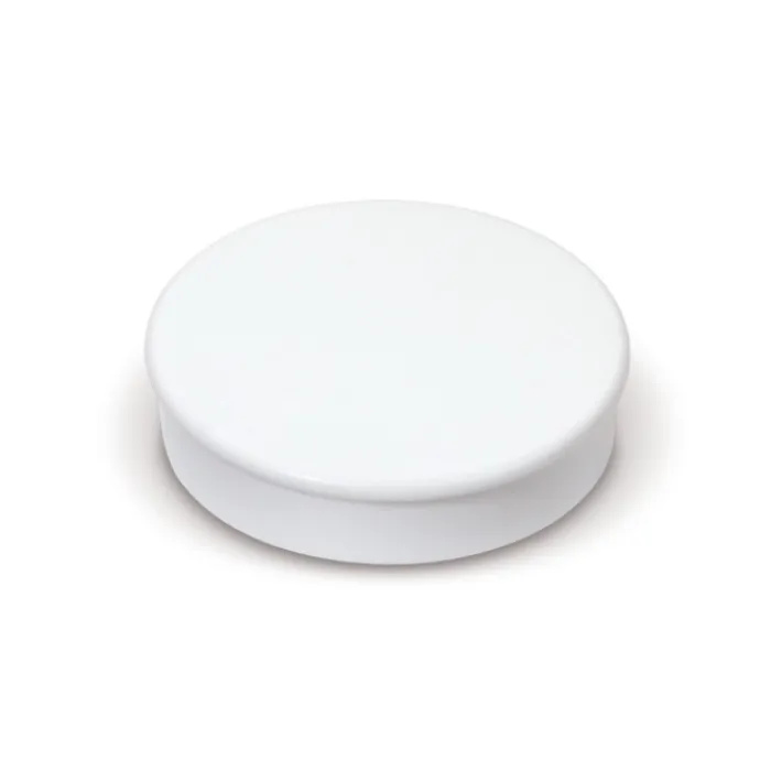 Calamita rotonda in plastica e ferrite. Può tenere fino a 9 fogli A4 medi. Diametro: 30mm. N6.