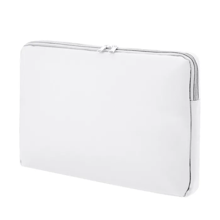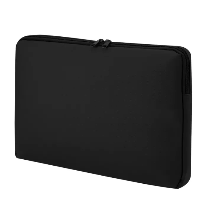 Pratica custodia per notebook realizzata in morbido PU. Comparto principale imbottito per fino a 15 pollici con chiusura a doppio tiratore in tinta.
