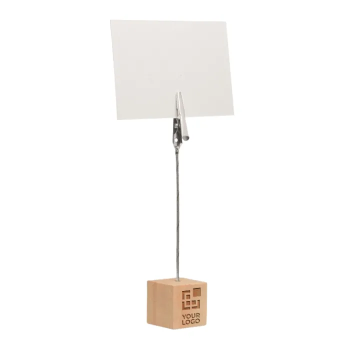 Se vuoi dare un tocco speciale e originale alla tua scrivania, a quella dei tuoi dipendenti o dei tuoi clienti, questo supporto decorativo per note e fotografie potrebbe essere il dettaglio che stai cercando. È possibile personalizzare quattro delle sei facce del cubo in legno di pino con il tuo logo. L’articolo include un’asta e una clip di metallo, ideali per fissare note con promemoria di compiti o riunioni importanti, oppure fotografie dei tuoi cari per accompagnarti durante la giornata lavorativa. Disponibile con servizio di consegna express.