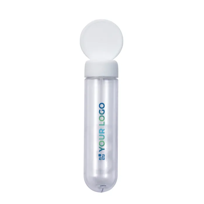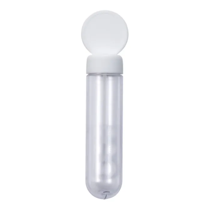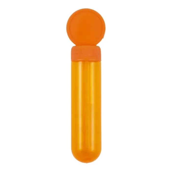 Bolle di sapone in PP e PE con cerchi di tre dimensioni. Flacone trasparente con liquido incluso, capacità di 30 ml.