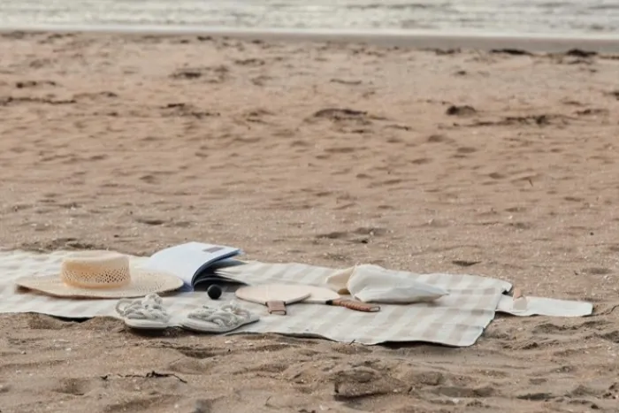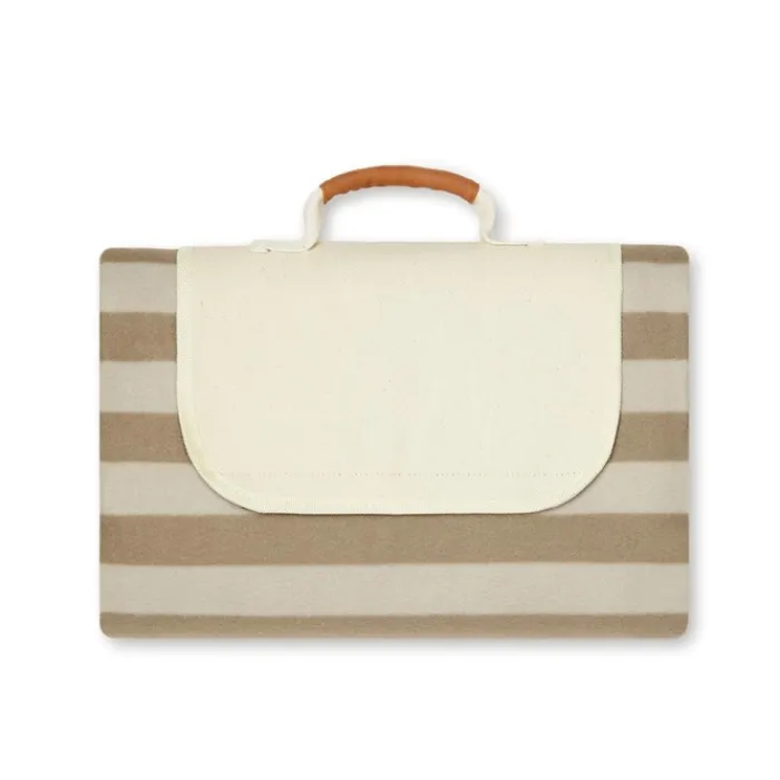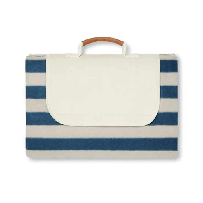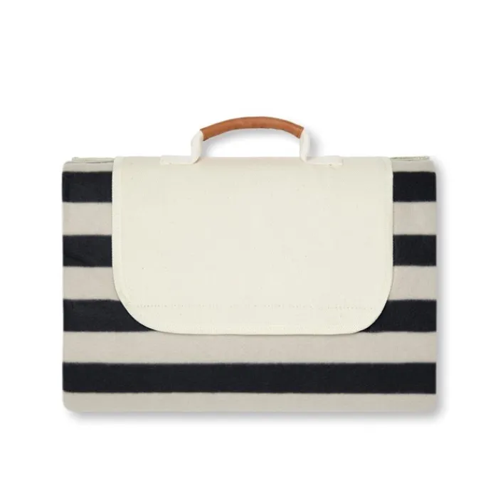 Coperta picnic con design a righe, realizzata in morbido pile con tela di cotone e dettagli in ecopelle. Il pile è realizzato con RPET certificato 100% GRS. La certificazione GRS garantisce una filiera completamente certificata dei materiali riciclati. La parte posteriore è realizzata in PEVA idrorepellente. Il design intelligente la rende facile da ripiegare e portare con voi. Contenuto totale riciclato: 58% in base al peso totale dell’articolo.