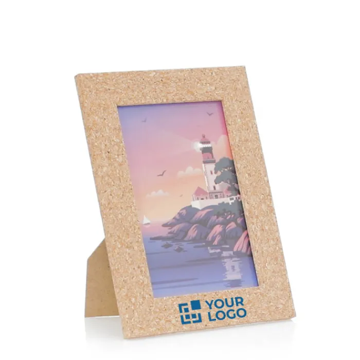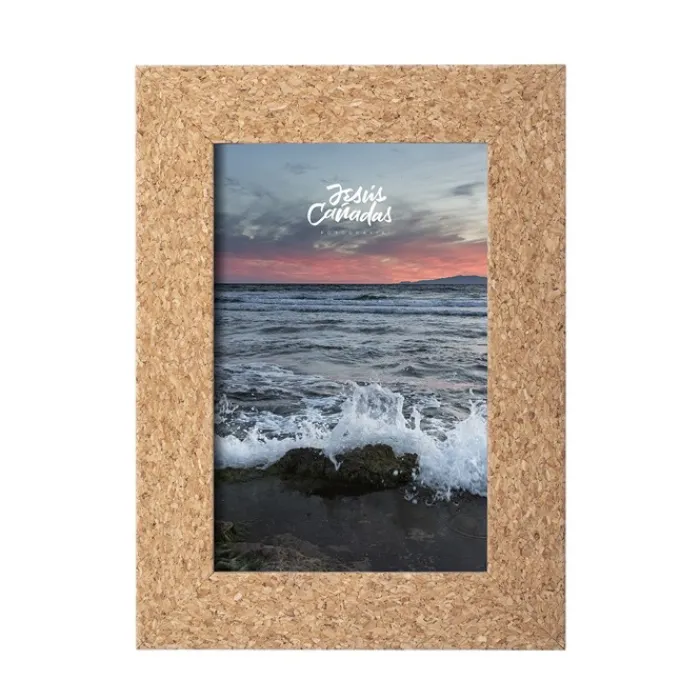 Cornice porta foto in sughero, con vetro protettivo e supporto posteriore per l’orientamento orizzontale o verticale. Progettata per fotografie di dimensioni fino a 10 x 15 cm. Confezionata singolarmente in un’attraente scatola dal design ecologico.