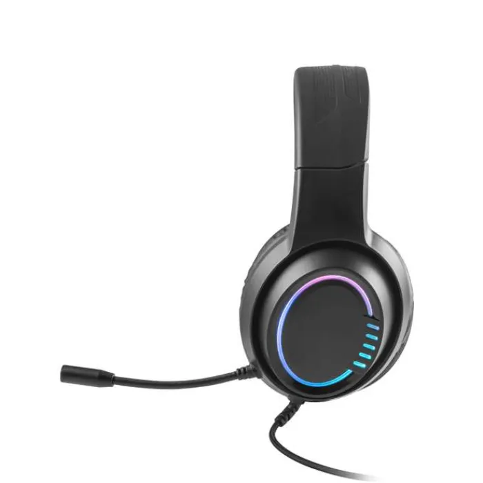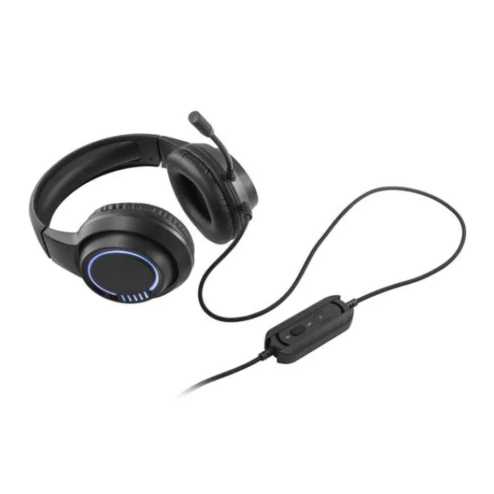 Cuffie da gioco con microfono integrato di alta qualità e luci RGB ad una modalità. Progettate per un utilizzo prolungato, sono resistenti, confortevoli e dotate di un cavetto di 2 m con controllo del volume. Include un cavetto jack da 3,5 mm con ingresso USB-A. Se utilizzate con questo cavetto, le cuffie offrono una qualità audio superiore. Fornite in una confezione regalo.