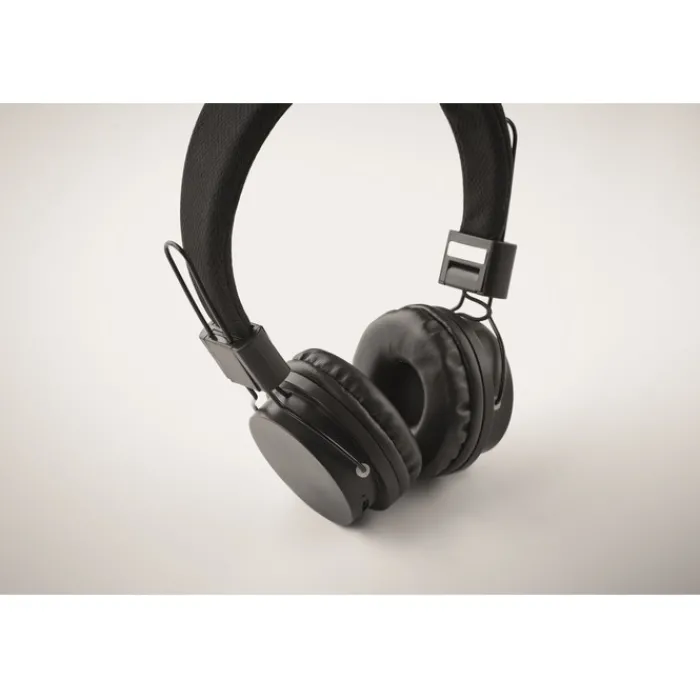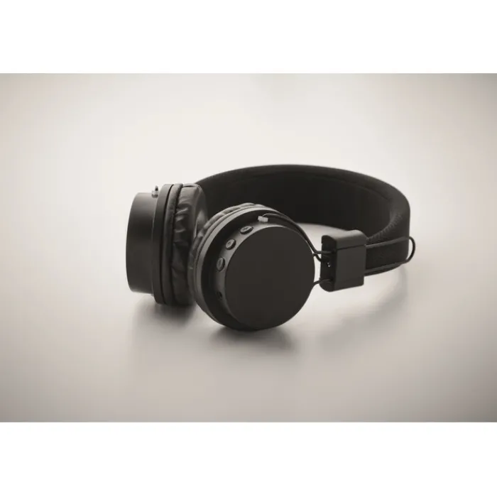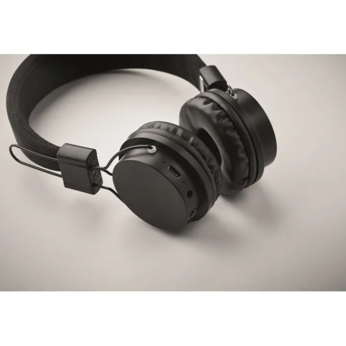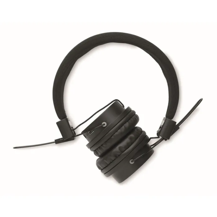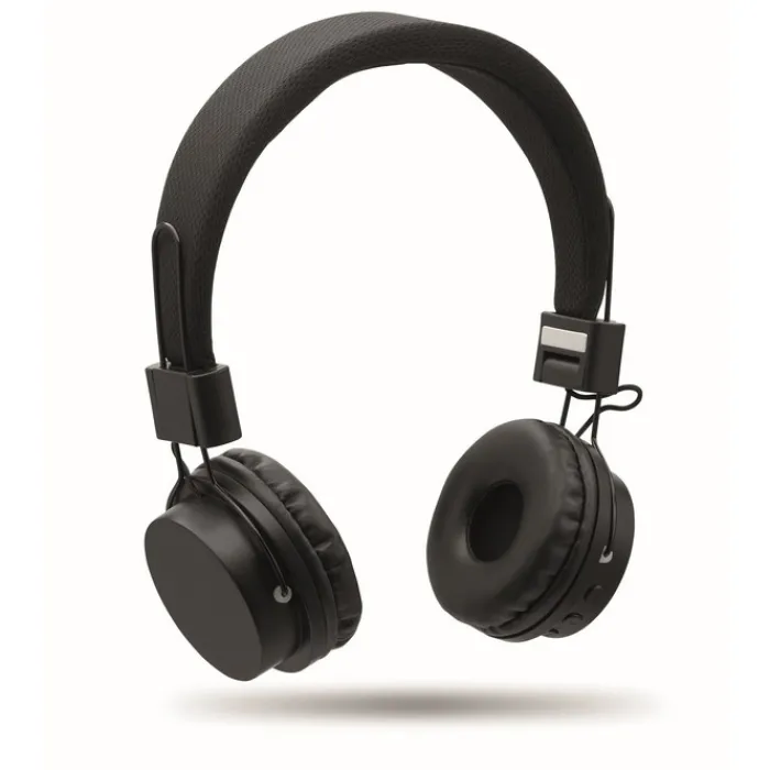 Cuffie wireless 5.4 pieghevoli realizzate in ABS. Funzione vivavoce e microfono incorporato. Durata di riproduzione di circa 9 ore. Batteria ricaricabile agli ioni di litio da 400 mAh. Ingresso: DC 5V. Dotate di porta AUX e porta Tipo-C. Includono un cavetto di ricarica micro USB. Raggio d’azione: 10 m.