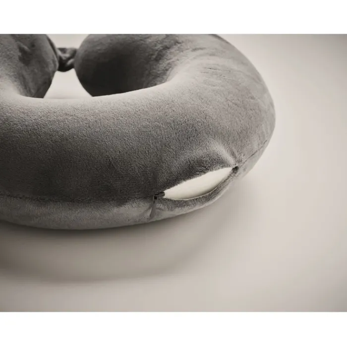 Cuscino da viaggio realizzato con tessuto ultra crystal e schiuma. Il tutto confezionato in un sacchetto di poliestere 210D RPET.